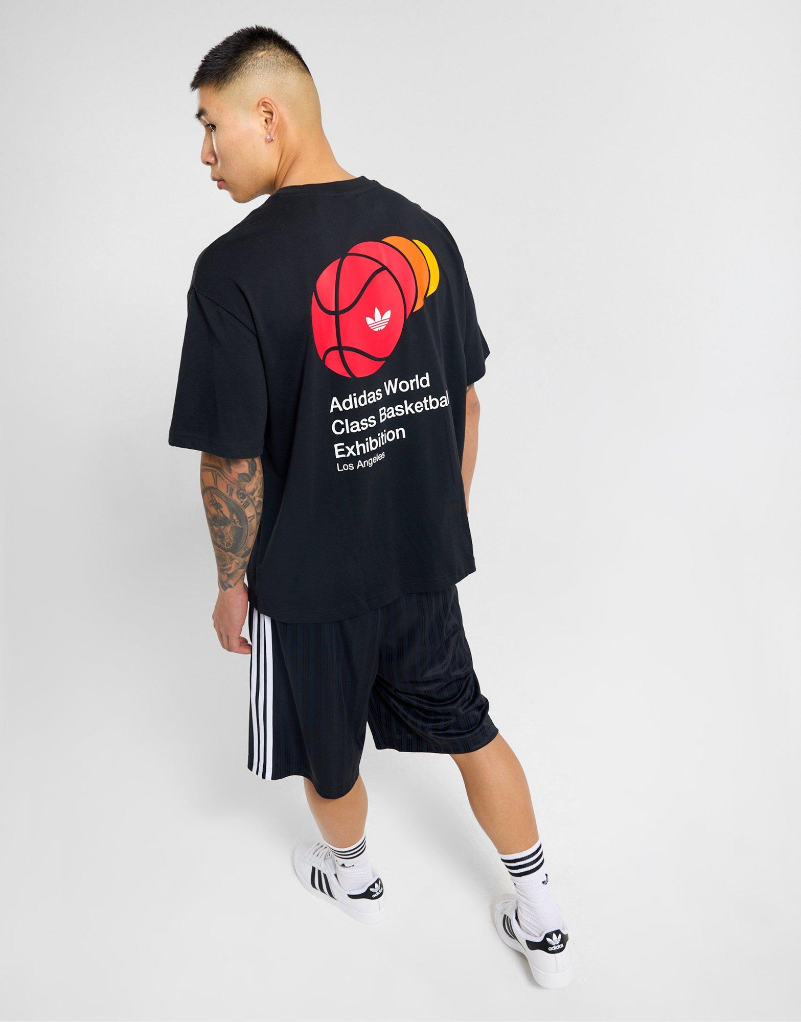 Whether you're running drills or running errands, this adidas basketball tee keeps you comfortable and ready for anything. The loose fit layers easily over a tank or long sleeve, giving you options for how to style it. A graphic on the back adds a fashion-forward touch. Style Code: JM9955