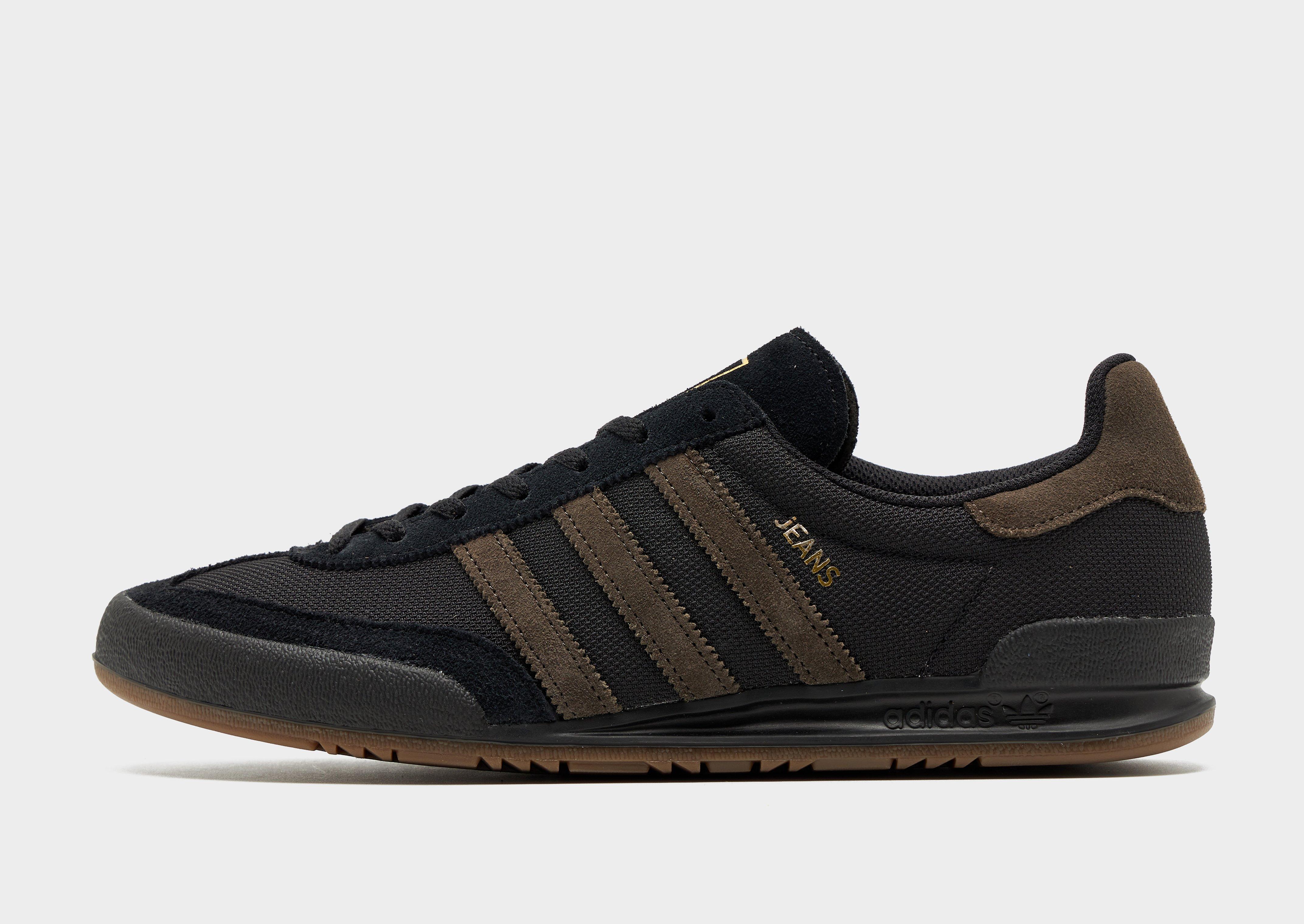 Rep some classic terrace style with these men's Jeans sneakers from adidas Originals. In a Black and Olive colourway, these JD-exclusive sneaks are cut from smooth and durable leather for a premium feel. They feature a lace fastening to lock you in, with a textile lining for a snug fit. Underfoot, they sit on a grippy rubber outsole for firm traction and are finished up with Trefoil branding and classic 3-Stripes. Style Code: HP3652