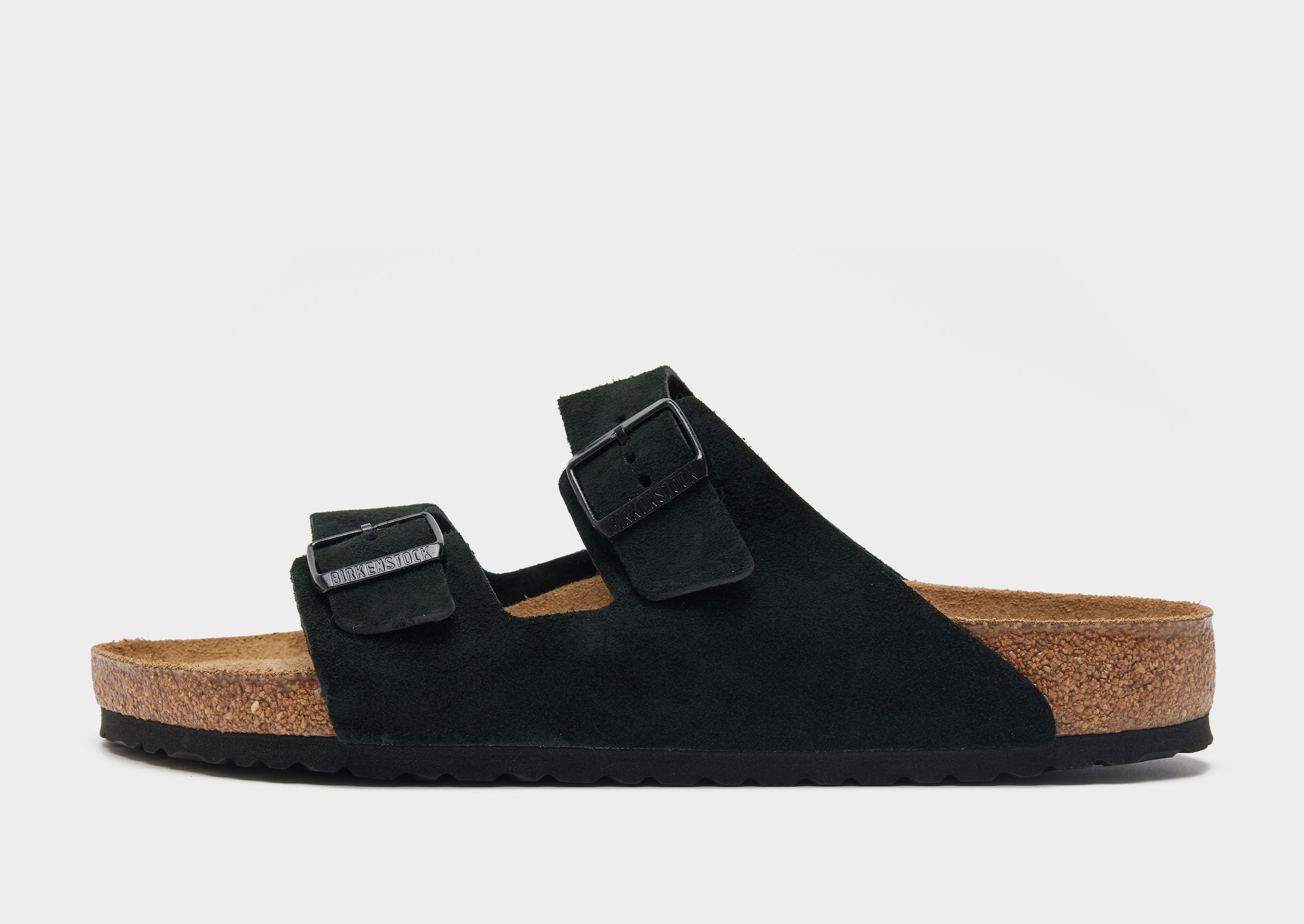 Born in '73, the Birkenstock Arizona sandals quickly became a symbol of comfort and laid-back style. Fast forward to today where they've stood the test of time and remain a staple footwear icon. These men's Arizona Soft Footbed slides, coming in a Black colourway, feature the iconic leather two-strap design with adjustable buckles for a comfy and secure fit, and sit on sit on a contoured soft footbed with extra cushioning. With arch support and a heel cup, the sandals are finished with engraved Birkenstock branding to the buckles.