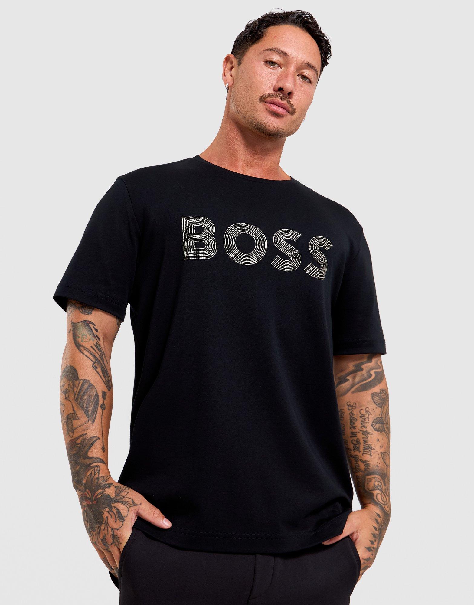 The BOSS Future Cross Stitch T-Shirt is a men's premium tee that brings genuine craft-led detailing to everyday wear. The cross stitch-inspired graphic in gold on a black base gives this piece a distinctive look that sets it apart from standard branded tops, leaning into a richer, more premium aesthetic that sits squarely within BOSS's modern streetwear offering. Made from high-quality cotton with a regular fit, it pairs naturally with chinos or tailored joggers for a look that reads smart-casual without effort.