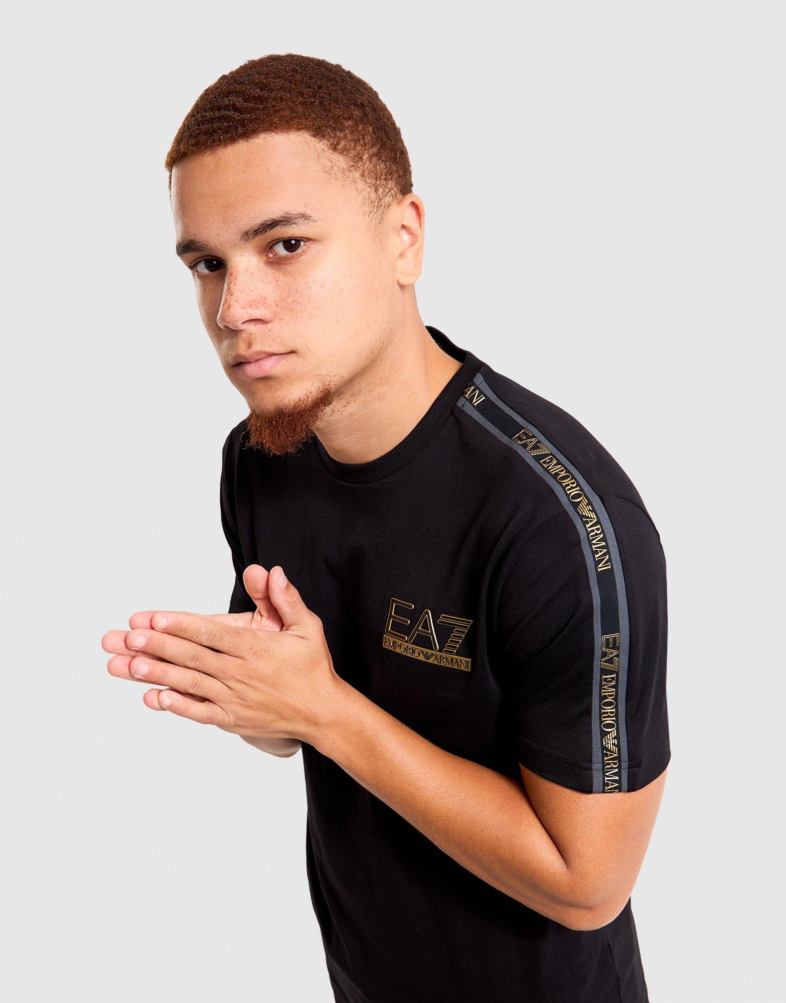 Update your casual essentials with this men’s EA7 Cotton T-Shirt, JD Exclusive, featuring striking tape detailing on black, grey and gold tones. The cotton-blend fabric offers soft, breathable comfort perfect for everyday wear or athleisure looks. With a regular cut and short sleeves, this tee delivers on both style and versatility. A great way to introduce understated luxury sportwear into your wardrobe. Style Code: 7M1986AF1253UC1