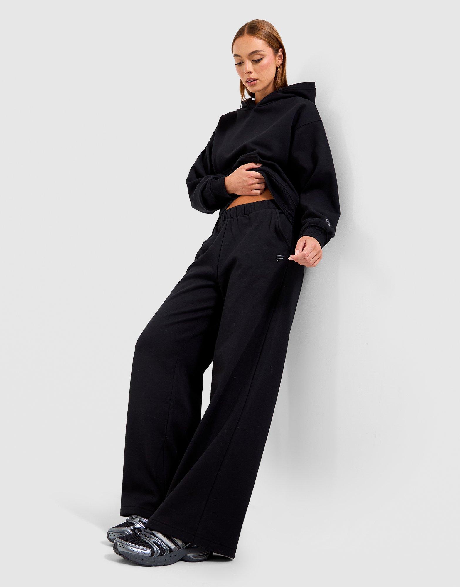 Lounge in style with these women's Fabletics Cozy Fleece Wide-Leg Track Pants, exclusive to JD for premium comfort. Made from soft fleece with a standard fit, they feature a wide-leg silhouette that delivers a relaxed, modern look. The all-black colourway keeps styling simple and versatile, pairing perfectly with any hoodie or sweatshirt. Built for all-day comfort, these track pants are an essential addition to your athleisure collection.