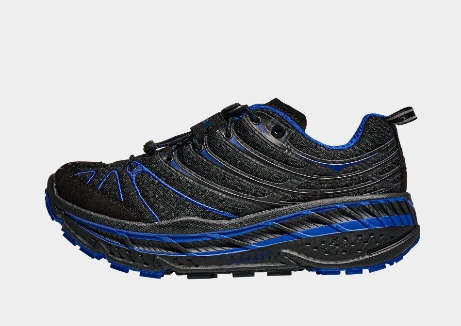 Road, trail or treadmill, it doesn't matter where you choose to run in these men's Stinson Evo OG trainers from HOKA. Landing in a Black colourway, these runners have a mesh upper to ensure breathable wear when you're running toward your goals. They feature a lace fastening to lock you in, a low-cut padded ankle collar for a snug feel, and a H-Frame that offers max' stability on any terrain. Underfoot, a Deep Active Foot Frame offers a super-smooth ride, while the multi-directional lugged rubber outsole brings total traction. With a durable toecap for lasting wear, they're signed off with Hoka branding throughout. Style Code: 1155350-BLTR
