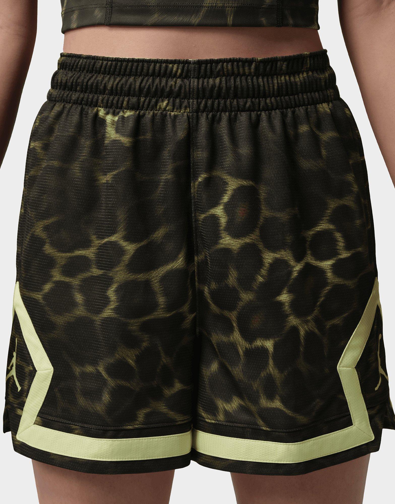Make a statement with these women's Jordan 4-Inch Diamond Shorts. Featuring a standard fit and all-over print design, they showcase black with olive and leopard accents for bold athletic style. The 4-inch inseam offers comfortable coverage for training, running, or casual wear. Built with Jordan quality and eye-catching graphics, these shorts bring premium basketball-inspired design to your activewear. Style Code: IF3495-331
