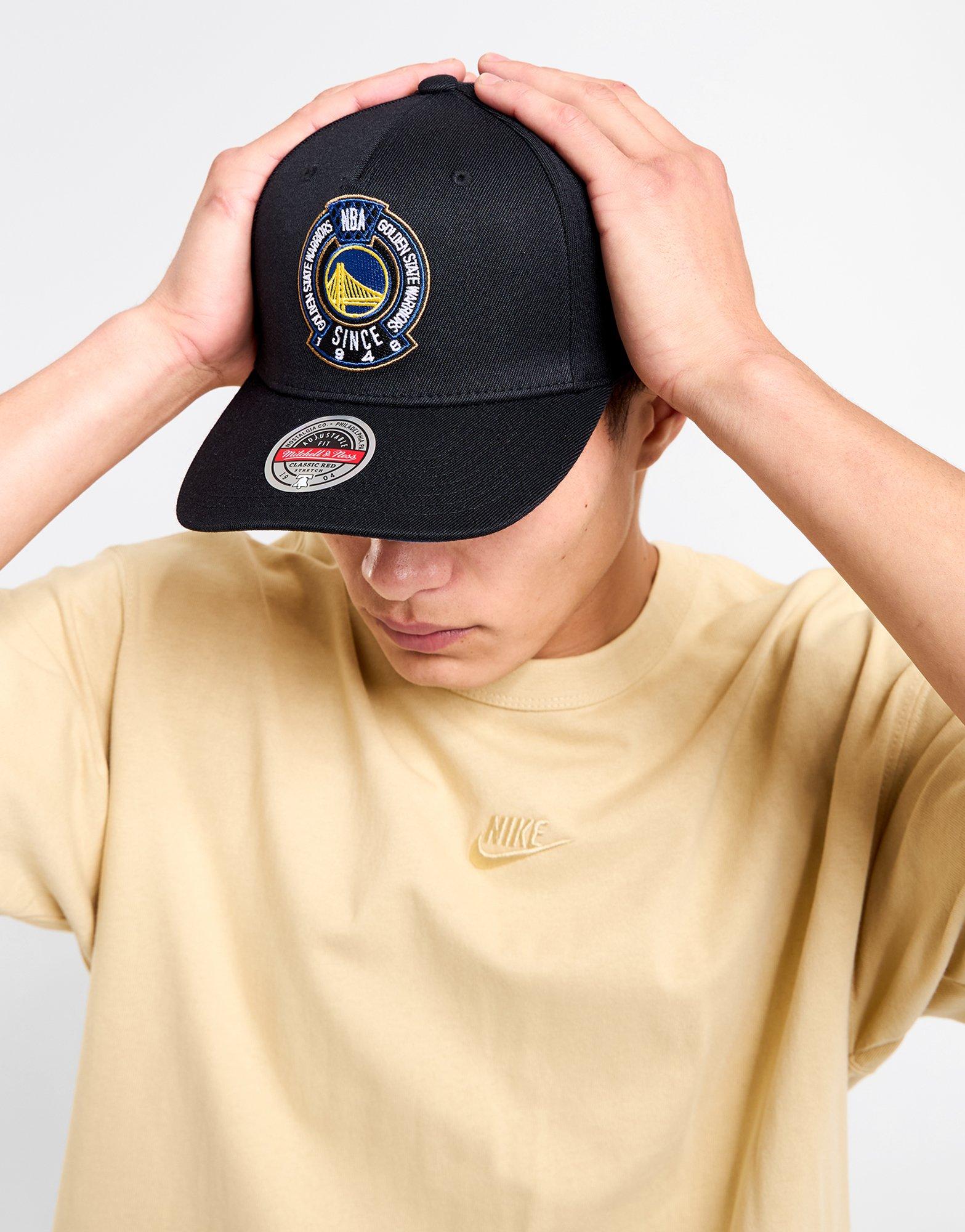 Upgrade your 'fits with this NBA Golden State Warriors Cap from Mitchell & Ness. In a Black colourway, this cap is made with soft but durable woven cotton for lasting wear. With a stitched panel construction, it has breathable eyelets through the crown and a pre-curved visor for a classic look. It has an adjustable back strap for a custom fit, and is finished with a Warriors logo at the front. Style Code: MNGW3345