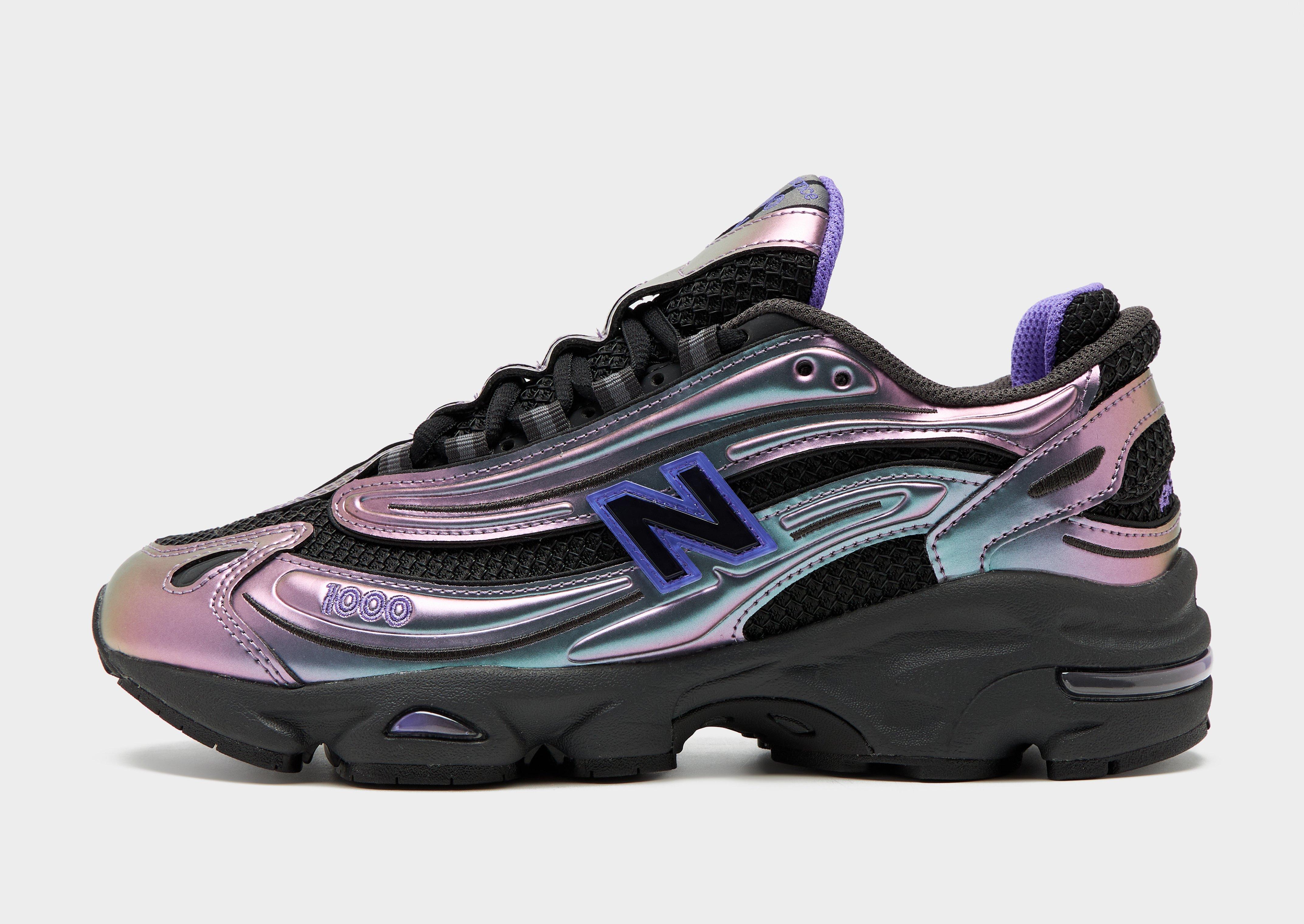 Rep a reimagined retro look with these women's 1000 sneakers from New Balance. Landing in a Faded Black colourway with metallic Electric Indigo details, these sneakers have a mesh base and an inverted synthetic overlay design with mesh underlays to keep them breathable. Underfoot, sculpted midsole details and ABZORB technology in the heel and forefoot delivers premium cushioning, while Stability Web outsole tech provides arch support and extra grip as you step out on the streets. Finishing up, they're complete with embroidered details, reflective accents and the iconic 'N' logo on the sidewalls. Style Code: U10004WRW