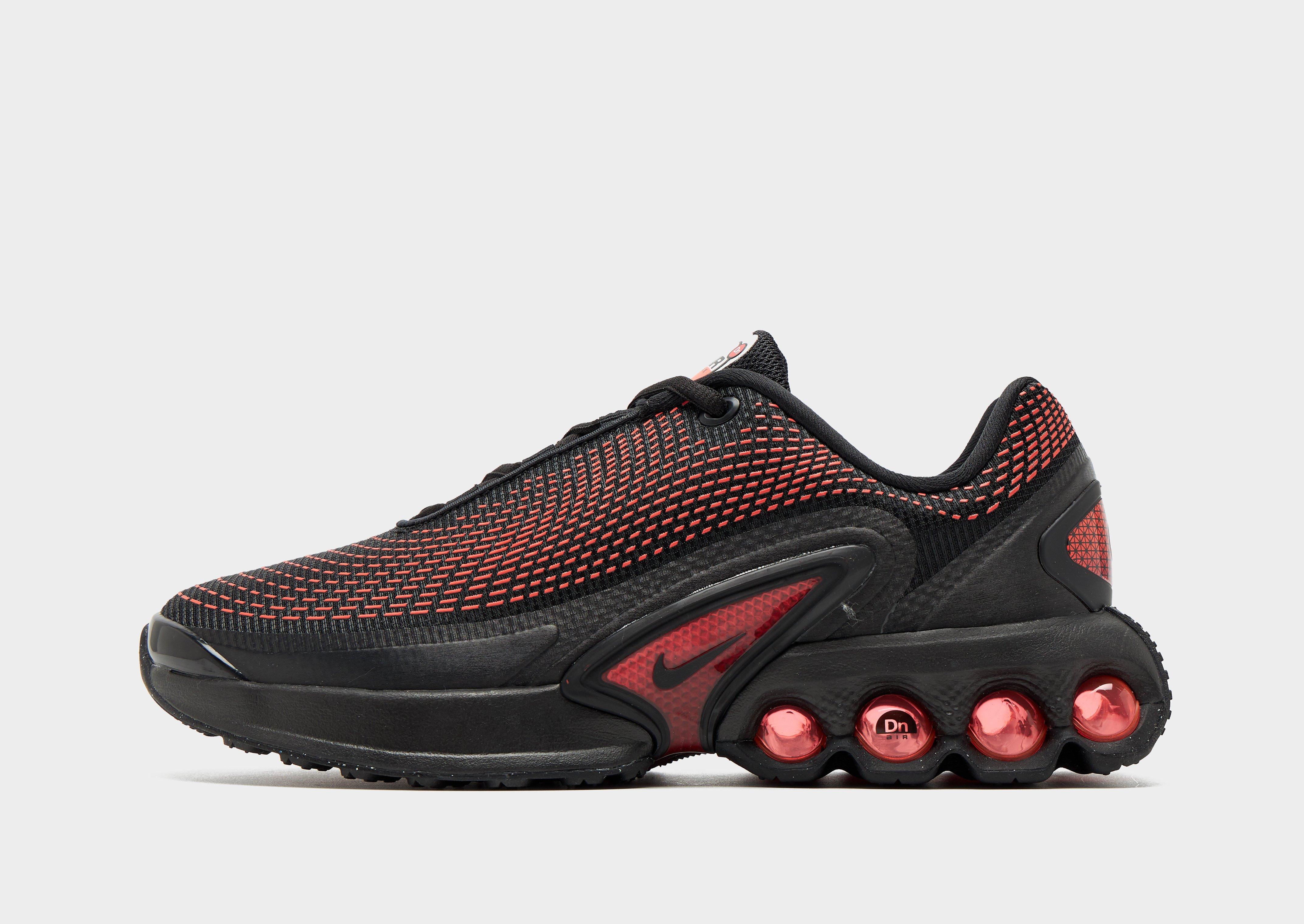 Feel the unreal with every step in these junior's Air Max Dn shoes from Nike. In a Black colourway with Red details, these revolutionary sneakers have a multilayered mesh upper with a haptic print. They feature matte synthetic accents for support, while the plush foam midsole surrounds the cushioning system for added comfort. Stealing the show, the Dynamic Air unit system features two sets of dual-pressure tubes that shift air levels from the firmer heel to the softer tubes towards the forefoot. With a solid rubber outsole to contain that extra energy, these shoes are finished off with signature Swoosh and Air Max logos. Style Code: FB8987-006