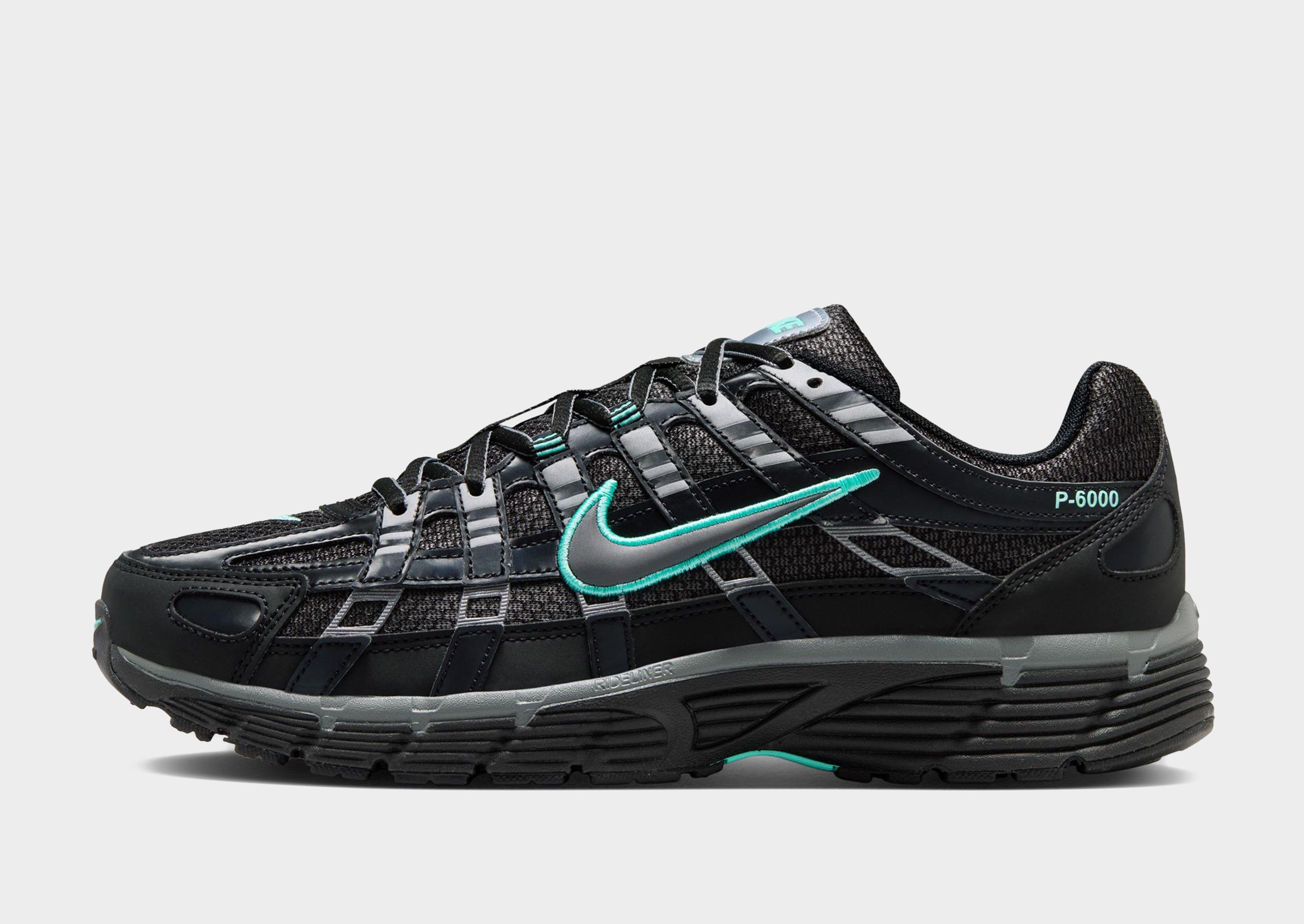 Exclusively at JD, the men's Nike P-6000 in Black with Turquoise and Grey is the bold, sport-coloured take on one of Nike's most talked-about retro running silhouettes. Inspired by the 2006 Nike Air Pegasus, the breathable mesh upper with real and synthetic leather overlays gives it that authentic early-2000s running aesthetic, while a foam midsole delivers lightweight, cushioned support for all-day wear. The Black base with Turquoise and Grey accent detailing gives this men's Nike retro runner a high-energy identity that stands out from the more neutral options in the P-6000 range. A full rubber outsole wraps up the look with durable traction built to last. Style Code: IR1477-010