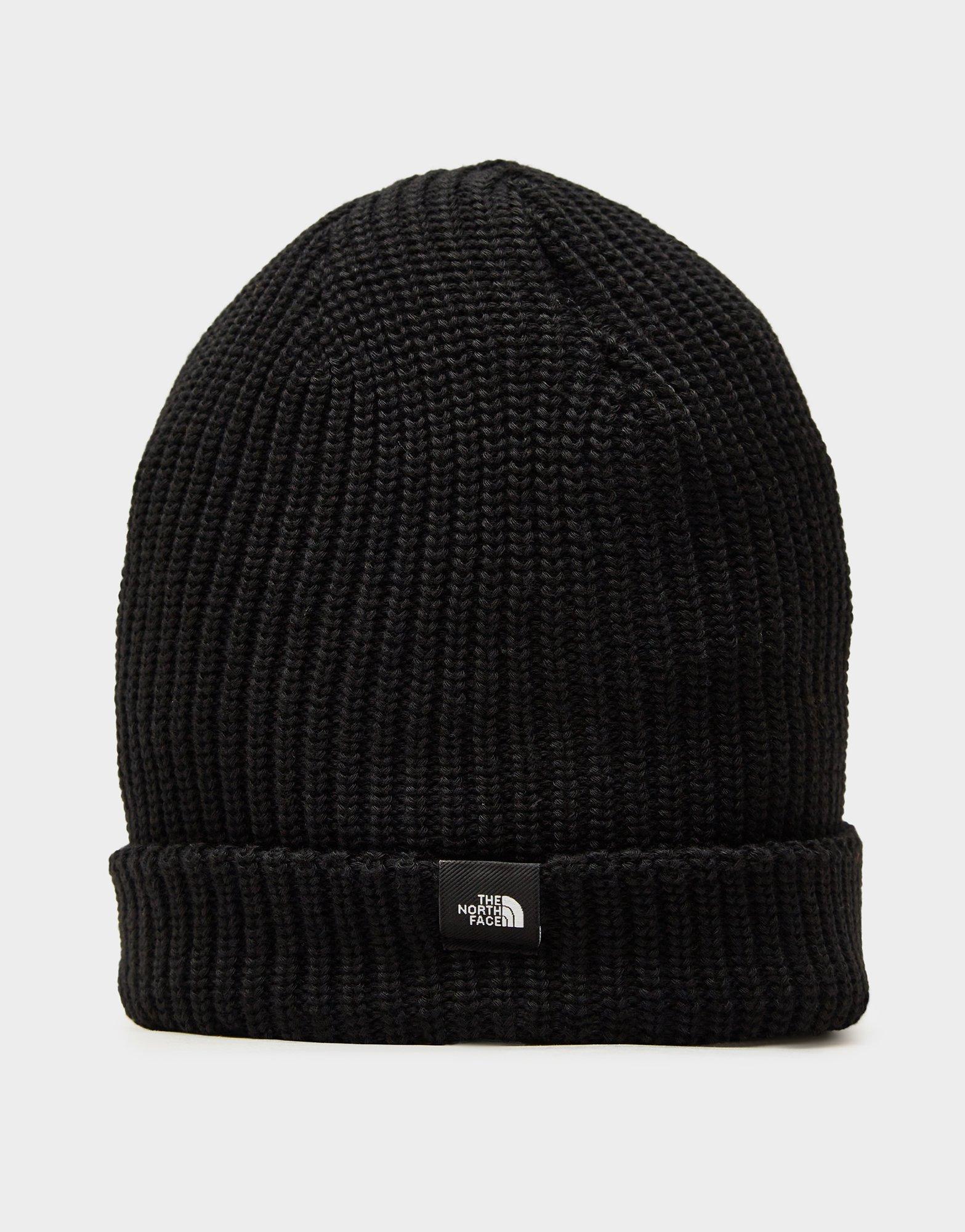 Stay warm when the cold hits with this Fisherman Beanie Hat from The North Face. In a Black colourway, this ribbed knit beanie is cut from ultra-soft acrylic for cosy comfort. Designed for snug silhouette for a modern, urban style, it features a fold-over cuff and is finished up with signature Dome branding to the front.