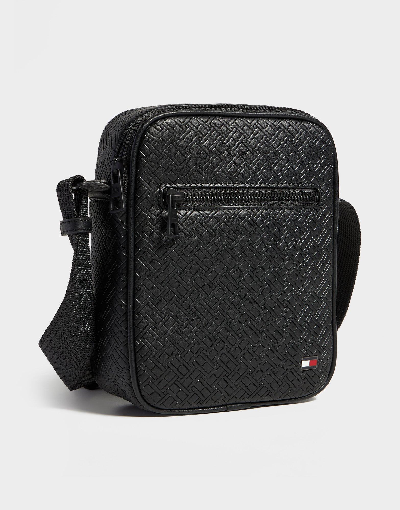 The Tommy Hilfiger Embossed Monogram Small Item Bag in Black with Flag detail is the compact, designer-branded accessory for those who want a polished everyday carry. The bag features an all-over embossed TH monogram design on both the front and back with an adjustable and removable crossover strap that provides versatility - allowing you to style it as a crossbody for casual outings or remove the strap for a more refined clutch look. Made from 100% polyurethane with a sophisticated textured finish, the Black colourway with Flag detail references Tommy Hilfiger's most iconic brand identity in a timeless, understated format. Style Code: AM0AM14193BDS