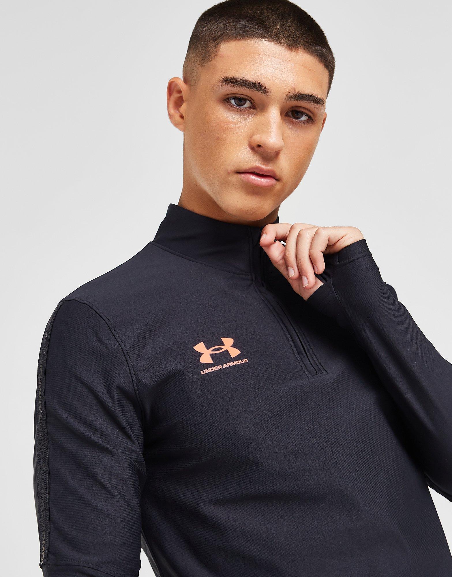 Take your training routine up a level with this men's Challenger Pro 1/4 Zip Top from Under Armour. In a Black colourway, this streamlined top is made with a 4-way stretch UA Microthread fabric that's smooth and sweat-wicking for max' comfort. It features a 1/4 zip fastening for custom coverage and built-in thumbholes to hold the shape. Signed off with the UA logo to the chest. Machine washable. | Our model is 5'11.5" with a 38" chest and wears a size medium.