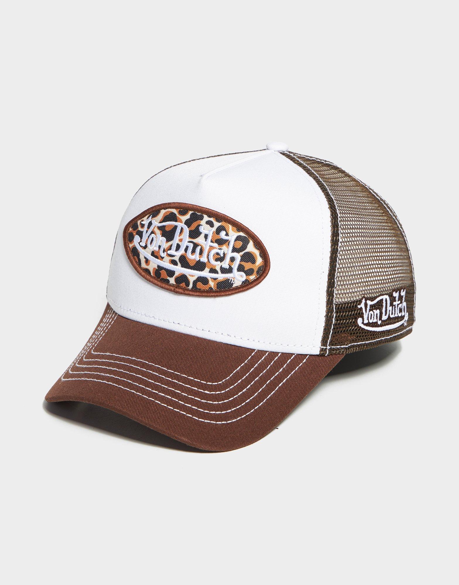 Add vintage vibes to your look with this Von Dutch Embroidered Graphic Trucker Cap, exclusive to JD for retro-inspired style. Featuring a standard fit with breathable mesh back panels, this cap delivers classic trucker styling with a modern edge. The brown colourway with white and leopard print embroidered details creates a bold, distinctive look. Perfect for festivals, casual days, or adding personality to any streetwear outfit.