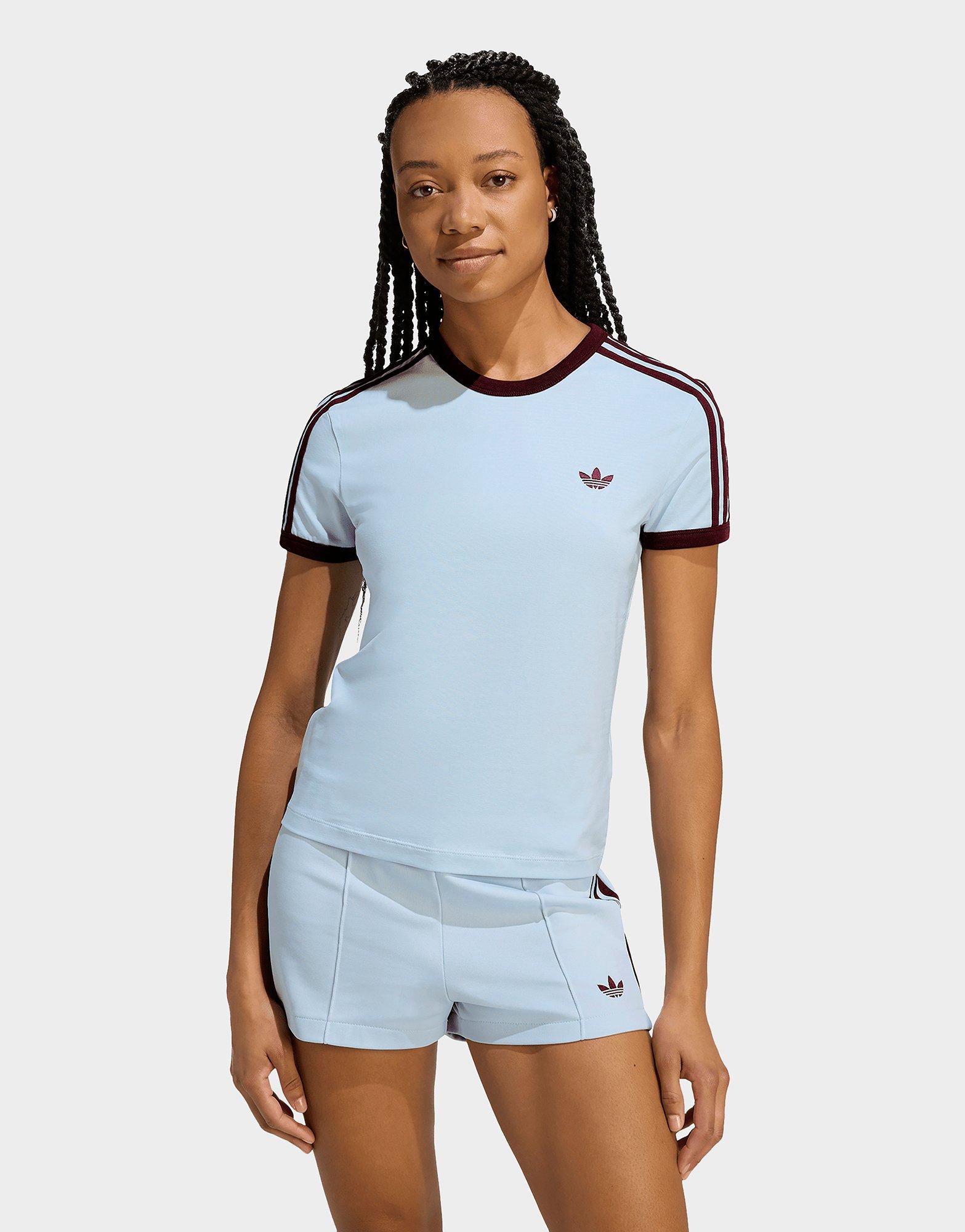 Step into sport-inspired style with the women’s adidas Firebird Fitted T-Shirt. Designed in a flattering fitted cut, it delivers a sleek, streamlined look. The light blue and maroon colourway channels classic adidas Originals heritage. Perfect for pairing with Firebird shorts or track pants for a head-to-toe vibe. Style Code: KD3684