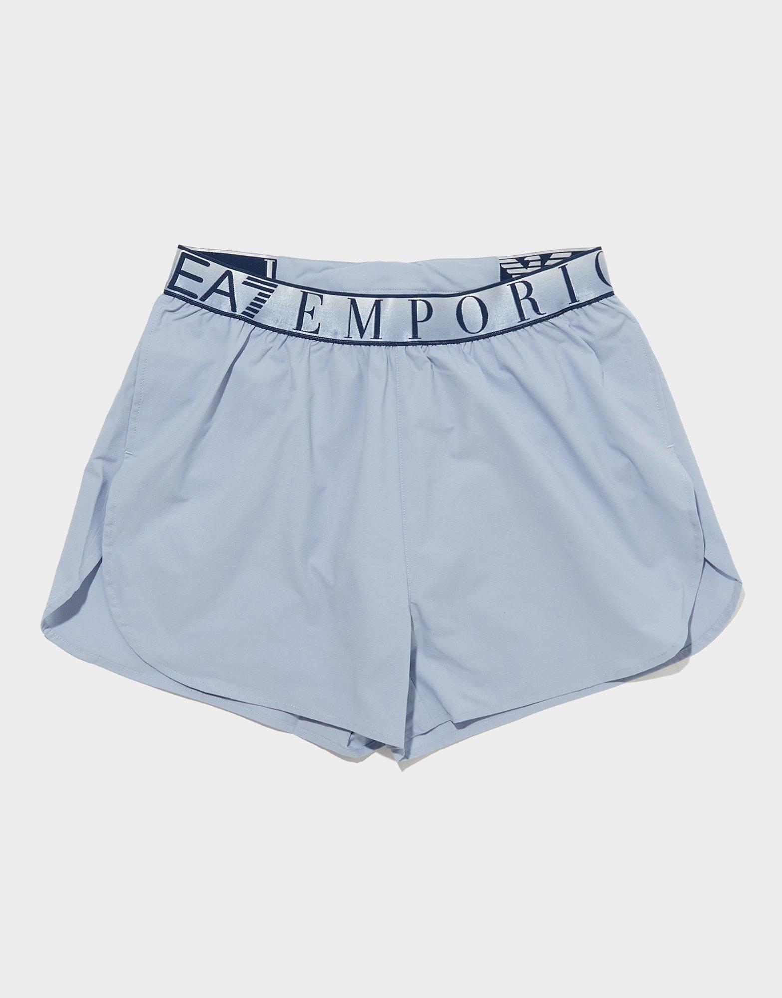 Train with style in these women's EA7 Woven Ventus7 Shorts. Designed with a standard fit and lightweight woven construction, they feature light blue with blue and white accents for premium athletic styling. The breathable fabric makes them perfect for training or active days. Built with EA7 quality and Italian sportswear sophistication, these shorts deliver Emporio Armani elegance to your workout wardrobe. Style Code: 7W09315724U9309