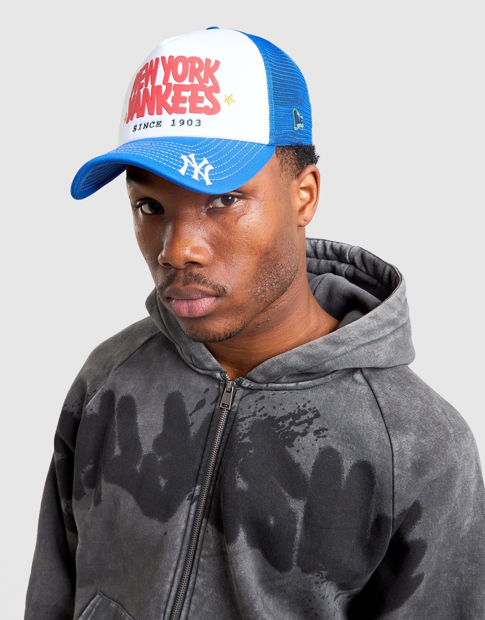 Upgrade your 'fits with this MLB New York Yankees 9FORTY Cap from New Era. In a Blue colourway, this cap is made with soft but durable woven cotton for lasting wear with airy mesh back panels for that classic trucker look. With a stitched panel construction, it has breathable eyelets through the crown and a pre-curved visor for a classic look. It has an adjustable back strap for a custom fit, and is finished with a Red Yankees logo at the front. Signed off with New Era branding. Style Code: 60766817