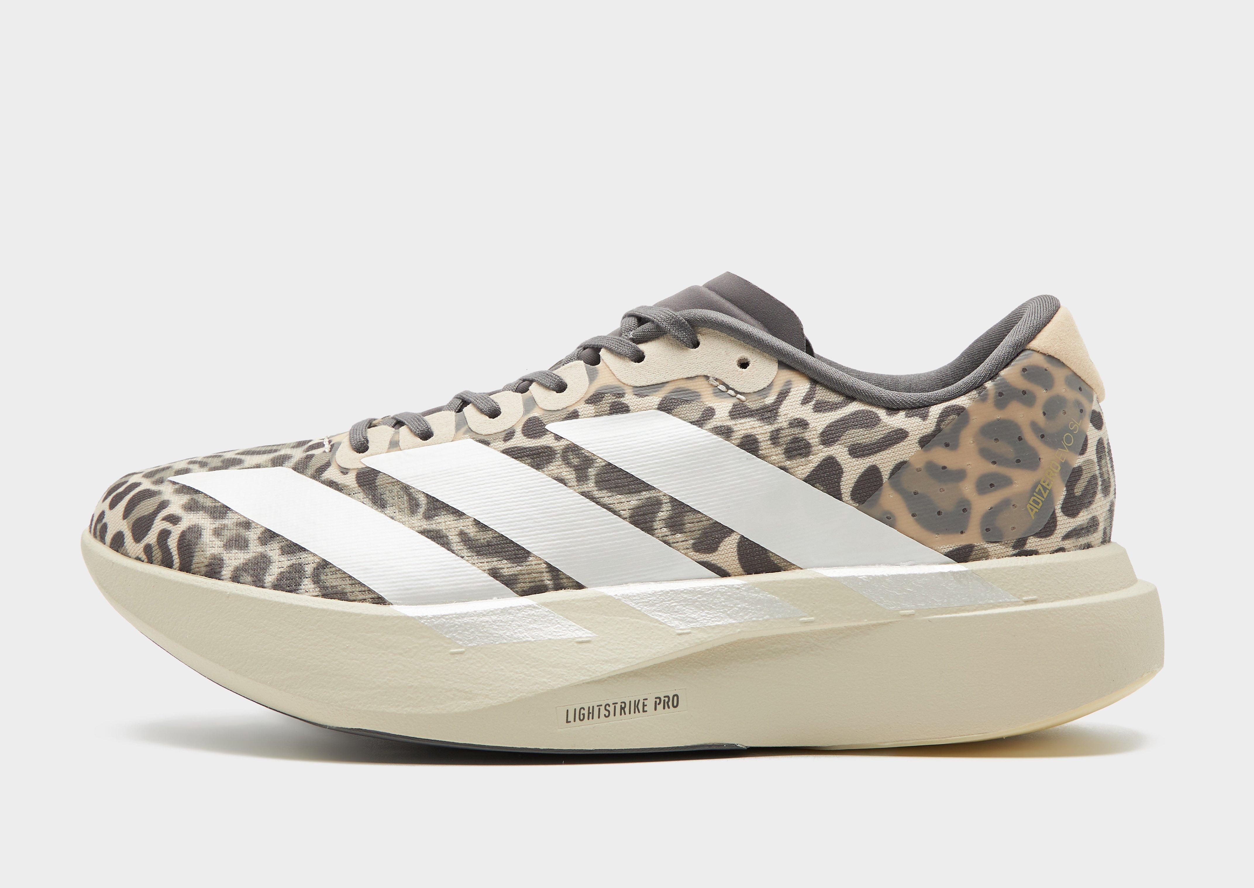 Rack up the miles in these women's Adizero Evo SL trainers from adidas, the perfect versatile sneaker. From everyday running to leisurely walking, this shoe is built for comfort, and for everyone. In a Leopard print colourway with Cream details, these lightweight, daily runners are made with a durable, breathable upper for comfortable, lasting wear. They feature a lace fastening to lock you in, Lightstrike Pro foam in the midsole for responsive cushioning and high energy return, perfect for everyday runs. Underfoot, the Continental rubber patches provide total traction as you go the full distance. Finished up with Performance logo branding on the heel, with the signature 3-Stripes to the sidewalls. Style Code: KI3948