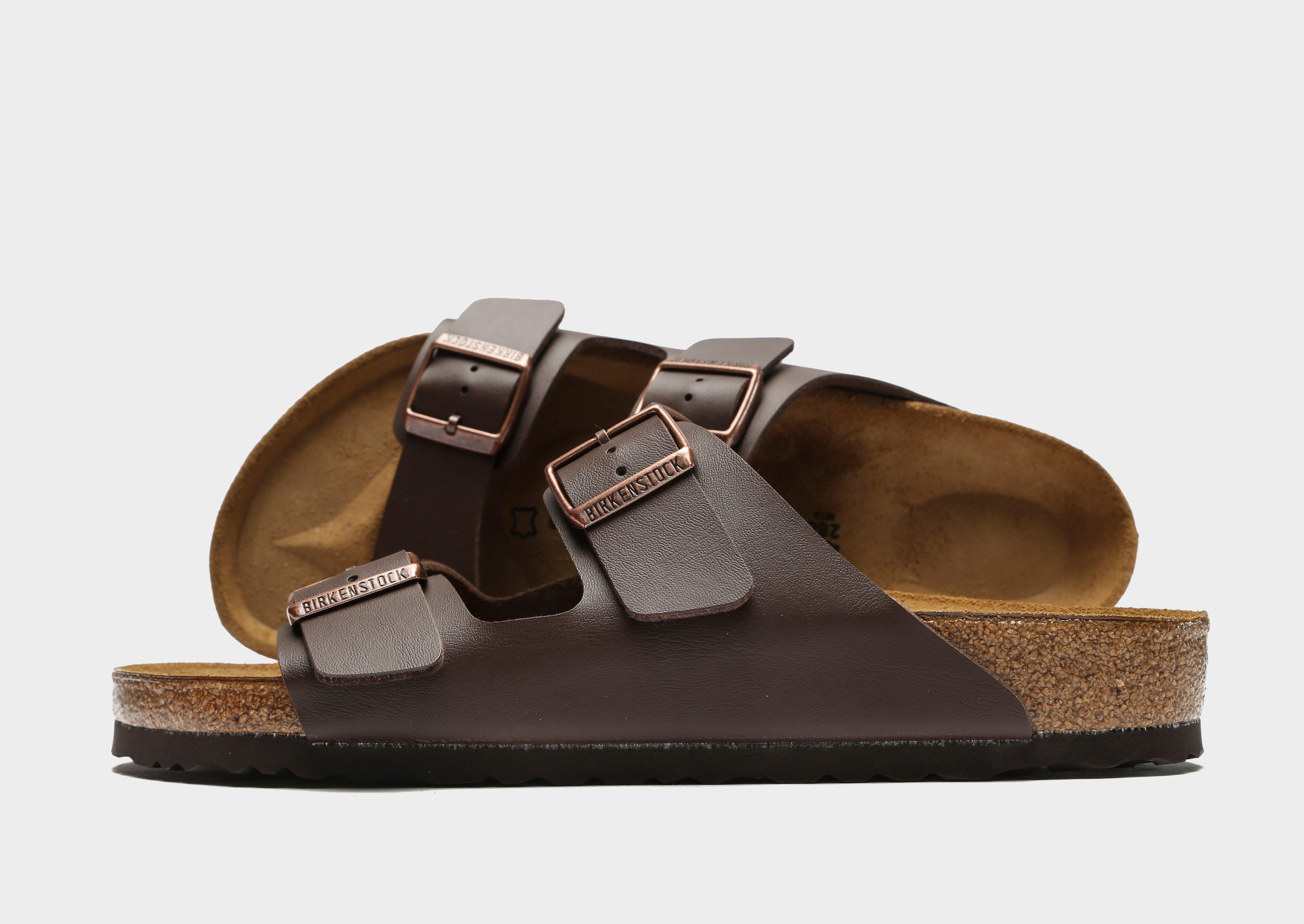 Update your rotation with these women's Arizona sandals from Birkenstock. In a Dark Brown colourway, these sandals sit on a natural cork footbed with a leather insole that moulds to the shape of your feet for next-level comfort. Featuring the classic two-strap design made with Birko-Flor PVC, the straps have a cosy fleece lining for easy wear. They have adjustable buckles for a custom fit, and a tough rubber outsole underfoot to keep ya gripped. Finished up with Birkensock branding engraved on the buckles.