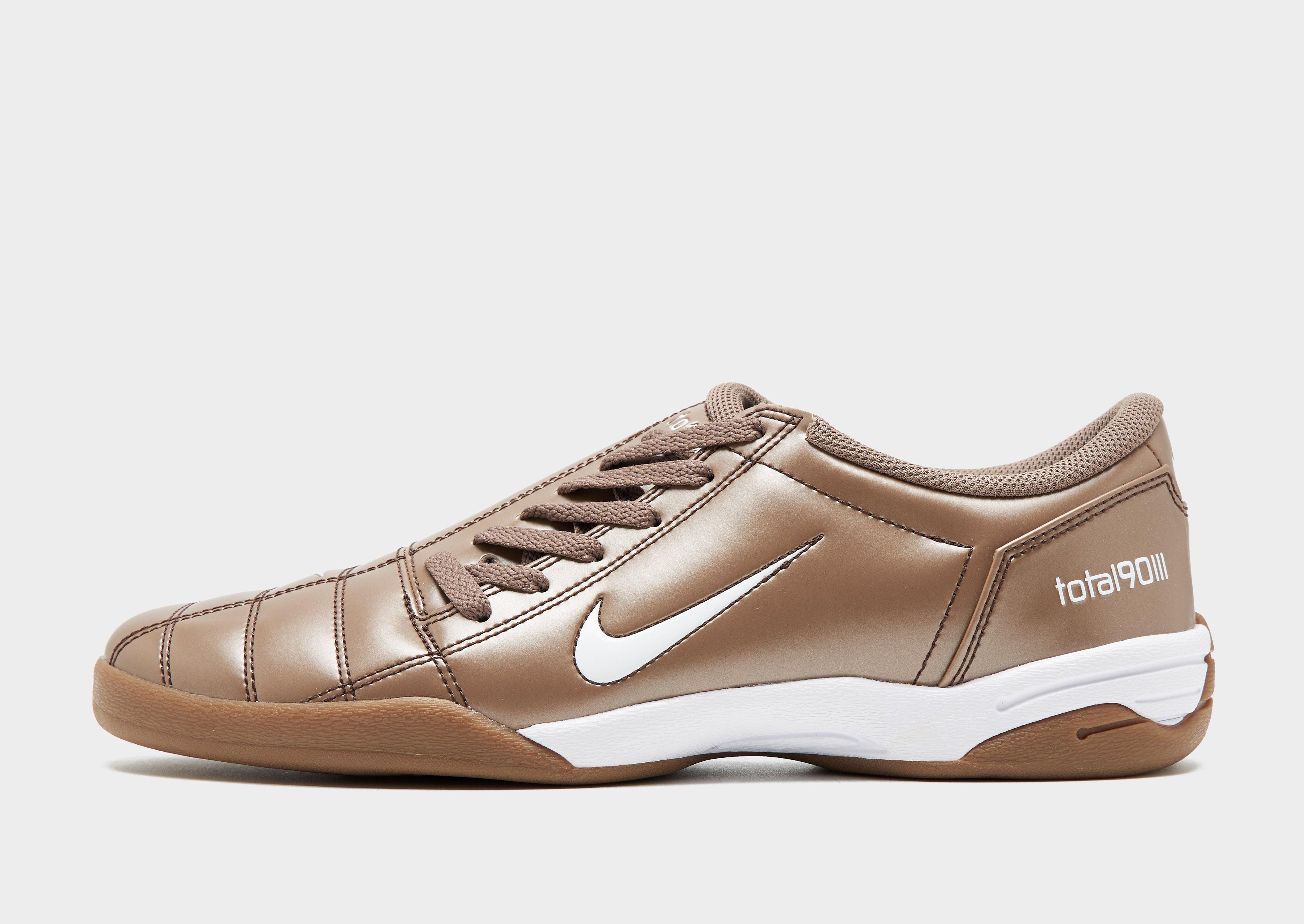 Bring a noughties soccer vibe to your step with these men's Total 90 sneakers from Nike. In a Brown and White colourway, these sneaks are crafted from smooth and durable synthetic leather in the legendary quilted style. They feature a lace fastening to lock you in, with a padded collar for support. Underfoot, they sit on a grippy rubber outsole for firm traction and are finished up with signature Swoosh logos and the iconic T90 logo. Style Code: HQ2851-202