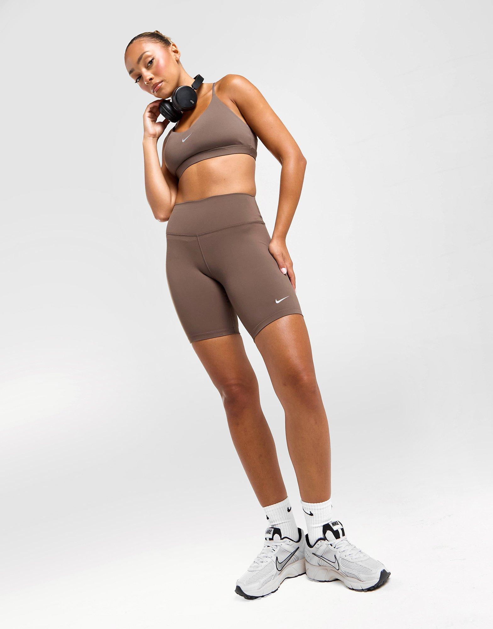 Exclusive to JD. From gym sessions to recovery days, these women's Training Swoosh 7" Cycle Shorts from Nike gives you versatility for both. Landing in an Ironstone colourway, the high-rise waist lies flat and snug for a comfy feel, while the 7 inch inseam offers extra coverage. They're made from a smooth and ultra-stretchy polyester fabric, with sweat-wicking Dri-FIT tech added in for cool comfort. Finished off with a small Nike graphic to the rear and the Swoosh on the left thigh. Machine washable. | Our model is 5'8" and wears a size small.