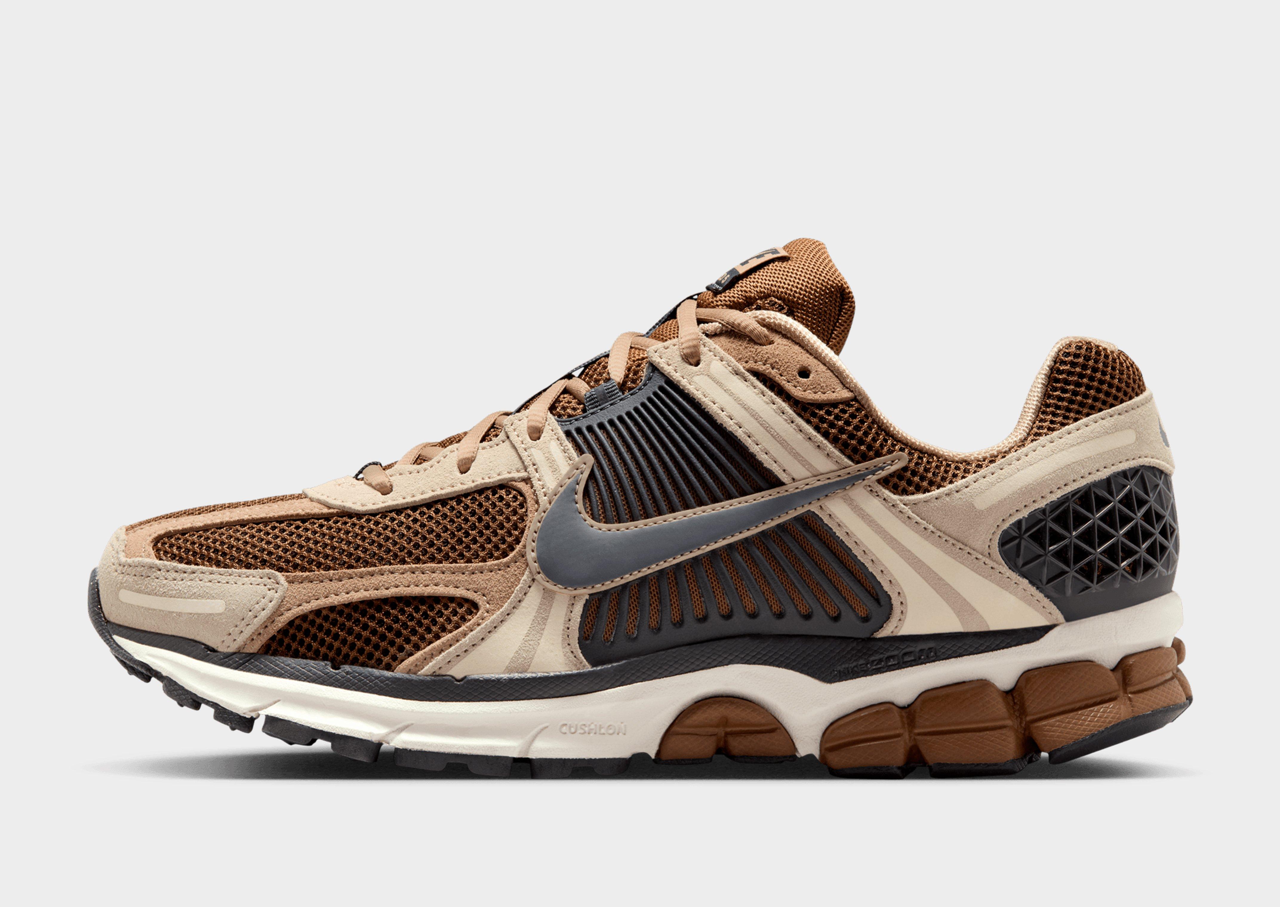 Retro running hits all-new heights with these men's Zoom Vomero 5 shoes from Nike. Landing in a Tan colourway with Smoke Grey details, this modern take on early '00s sneakers have a breathable mesh upper with TecTuff and utilitarian overlays for a durable and structured fit. Equipped with extra padding at the collar and tongue for comfort, they're sat above Zoom Air cushioning in the foam midsole for a super responsive, lightweight ride. Finished off with a solid rubber outsole and signature Swoosh logos. Style Code: HF1553-202