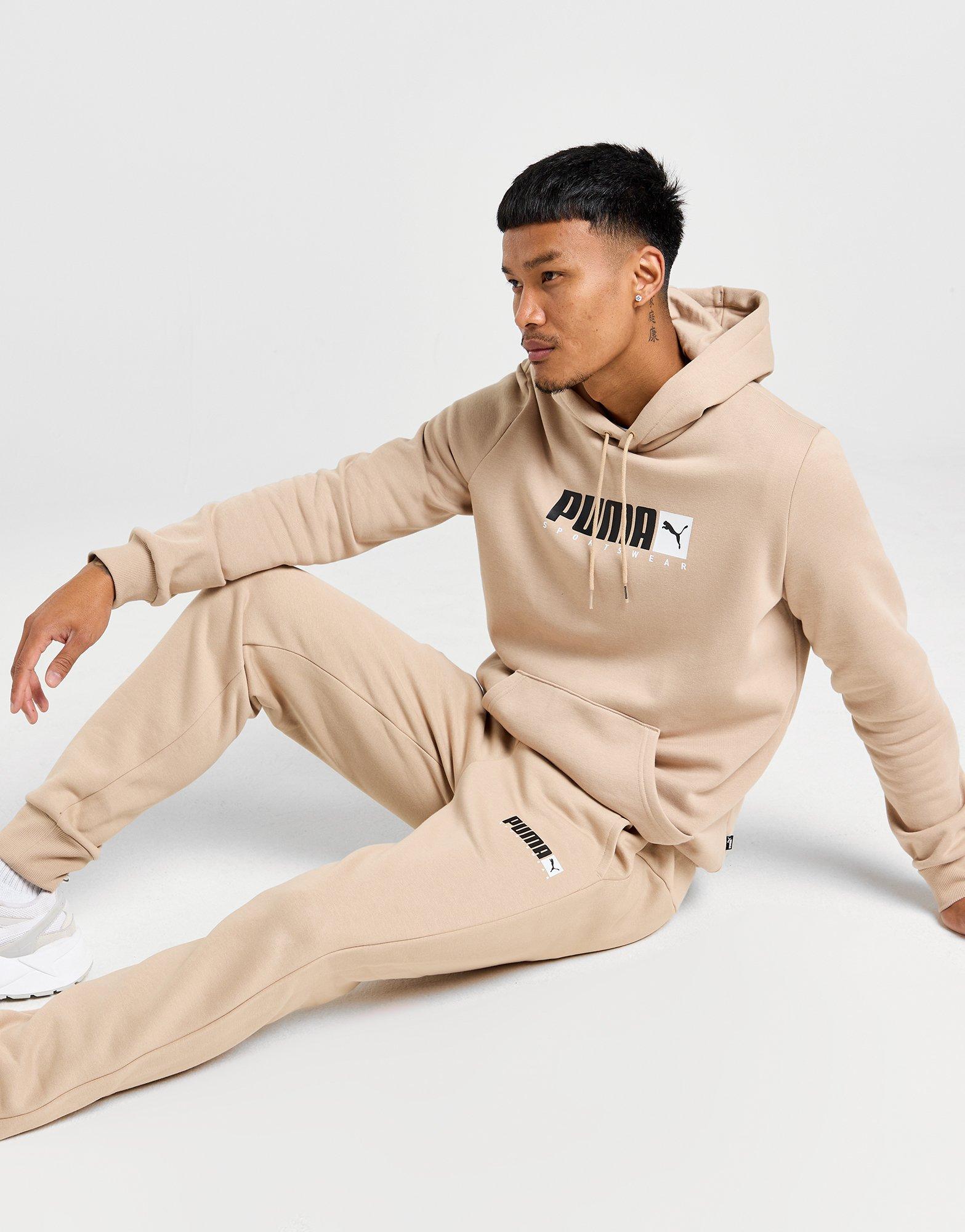 Upgrade your laidback looks with these men's Core Sportswear Joggers from PUMA. Landing in a Stone colourway, these regular-fit sweatpants are made with a soft cotton-blend fleece for lasting comfort. They have an elasticated waistband with a drawstring to adjust the fit, and ribbed ankle cuffs for a secure feel. With side pockets to stash your essentials, they're finished with classic PUMA branding at the thigh. Machine washable. | Our model is 6'0" and wears a size medium.