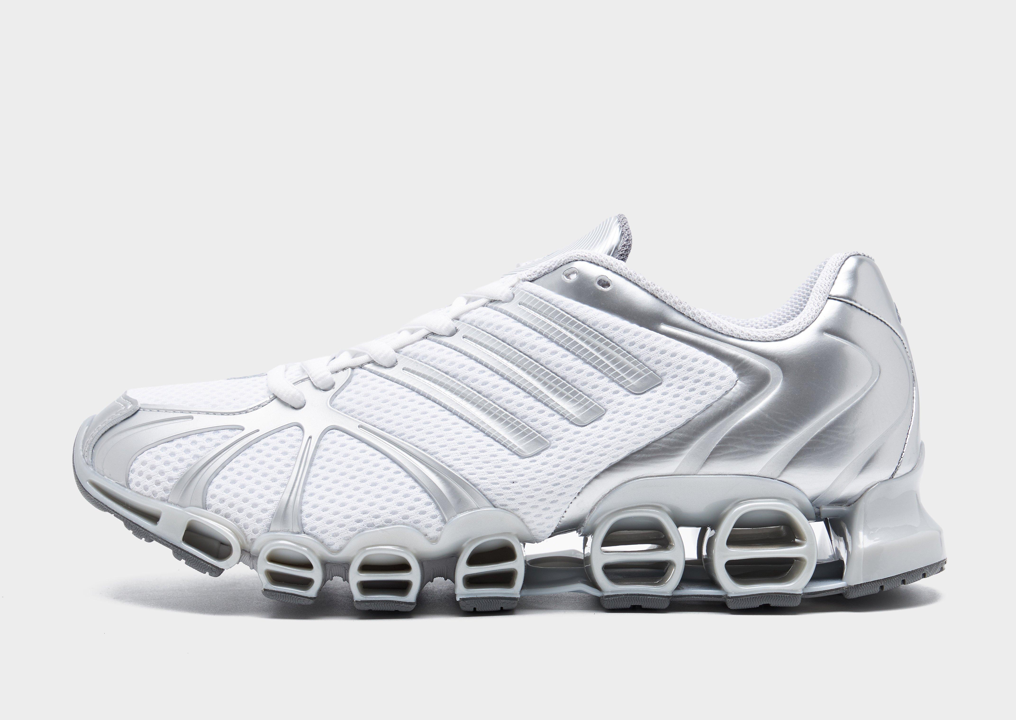 The Mega Ghostride shoes from adidas are all about the power of transformation. Their design evolves the Y2K trend, taking cues from the era's bold, maximalist style. The sporty mesh upper is accented with matte metallic 3-Stripes and a front cage. A glossy TPU overlay at the back adds an eye-catching finish. Underneath, the full Megaride tooling and Bounce midsole offer the comfort and attitude you've come to expect from adidas Originals. Style Code: JQ0555