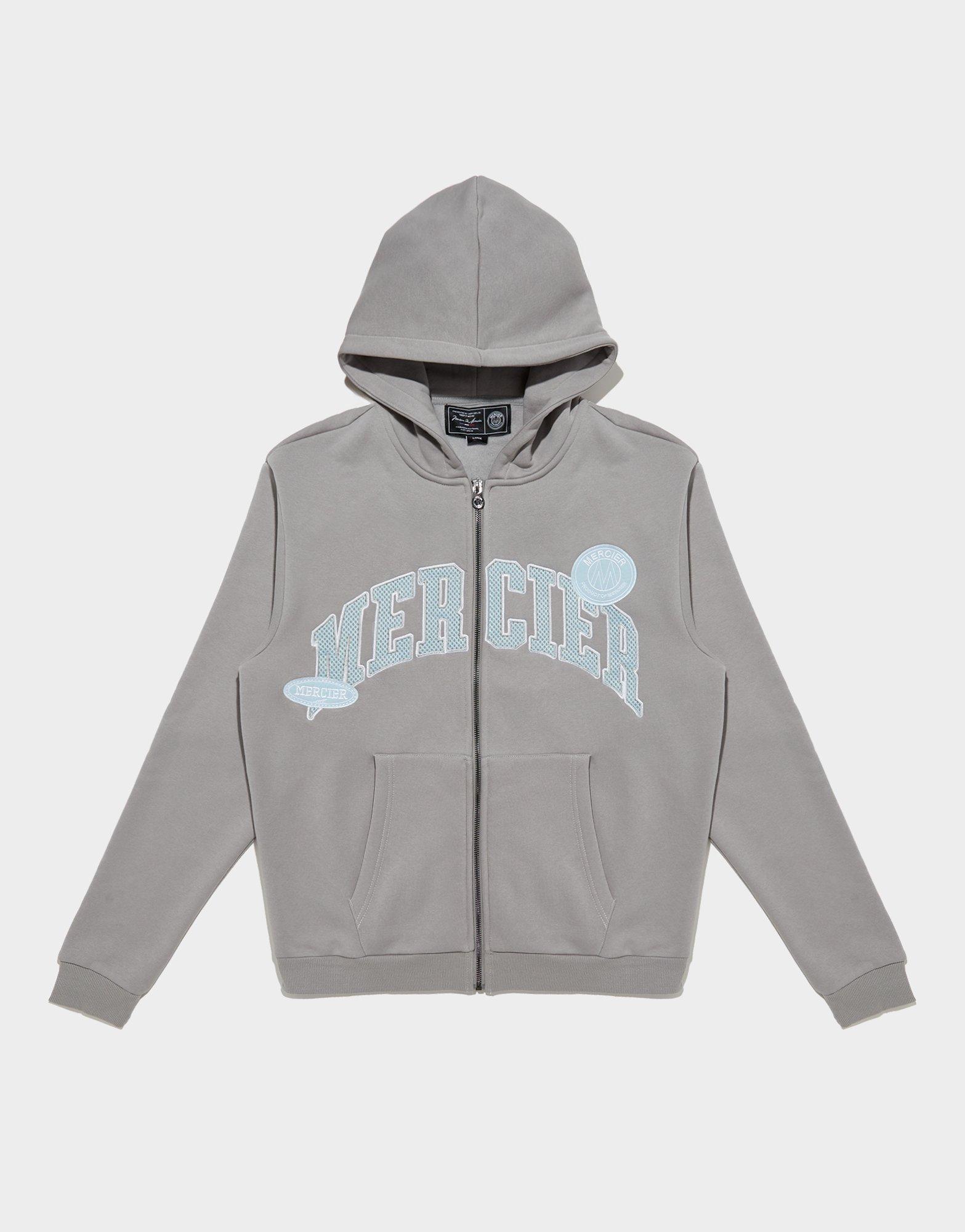 Layer smart with this men's Mercier Full-Zip Hoodie. Featuring a standard fit with long sleeves, ribbed cuffs, and full-zip closure, it showcases grey with black and blue high brand read detailing. The bold branding brings contemporary style to versatile layering. Built with Mercier quality and eye-catching design, this hoodie is perfect for training or casual wear. Style Code: MERC1077
