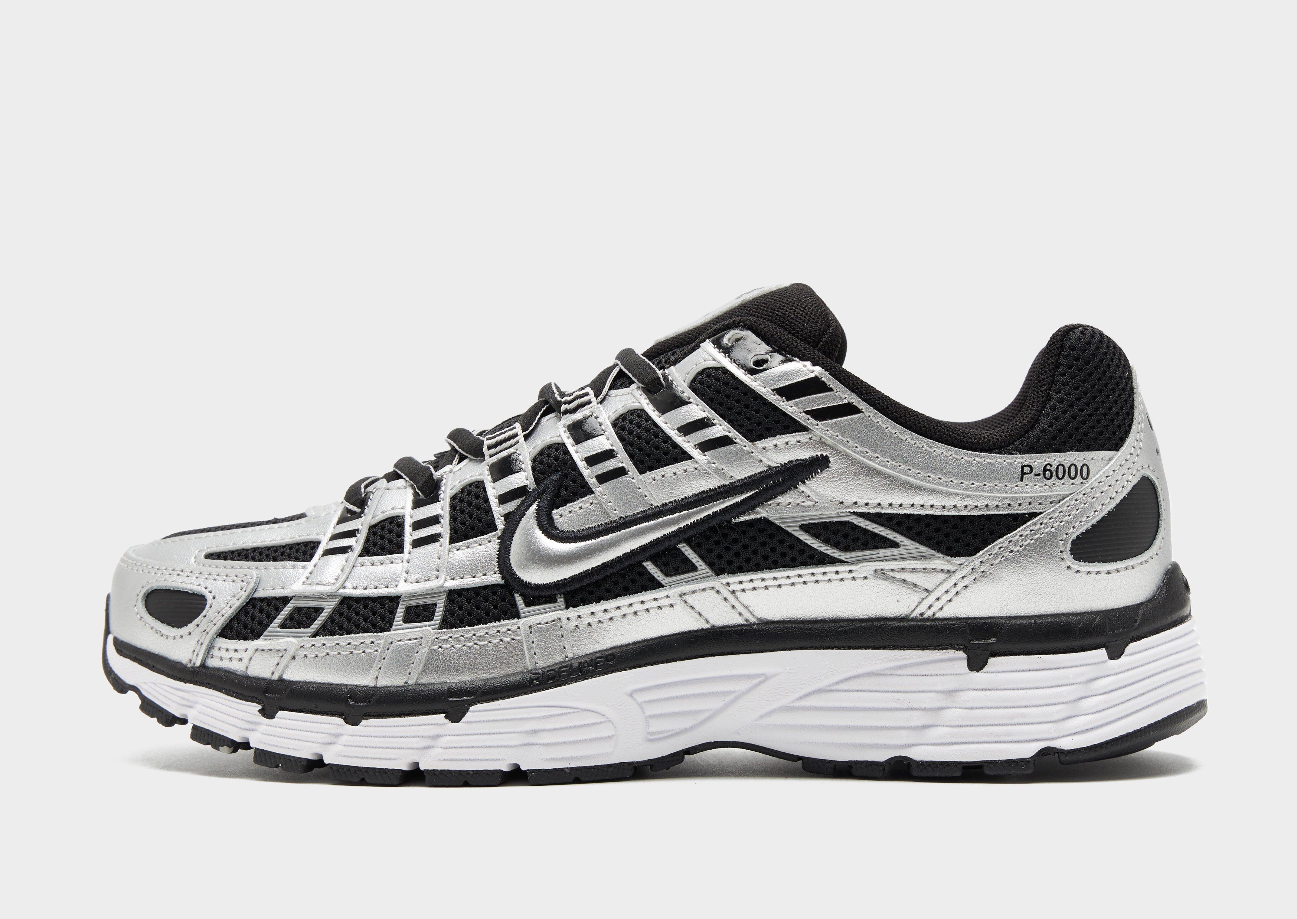 Rep retro, Y2K running style with these women's P-6000 shoes from Nike. In a Black colourway with Silver details, these 2000s inspired sneakers have a multilayered upper with airy mesh, leather and synthetic materials. They feature a tonal lace fastening with soft padding around the ankle collar for a locked-in fit, and sit atop a spongy cushioned insole for all-day comfort. They have a tough rubber outsole for grippy traction, and are finished with signature Swoosh branding throughout. Style Code: BV1021-013