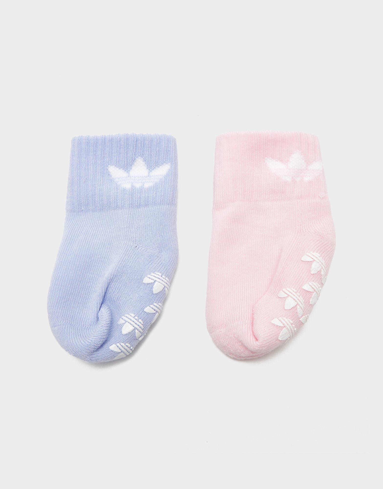 Get them sporting the Trefoil with these infant's 2 Pack of Ankle Socks from Adidas Originals. In Pink and Purple colourways, these socks are made from a super soft and stretchy cotton blend for comfort. In an ankle cut, these socks have ribbed cuffs to hold them in place, cushioning in high-wear areas, and grippers on the bottom to keep little ones from slipping. Finished with the iconic Trefoil silhouette