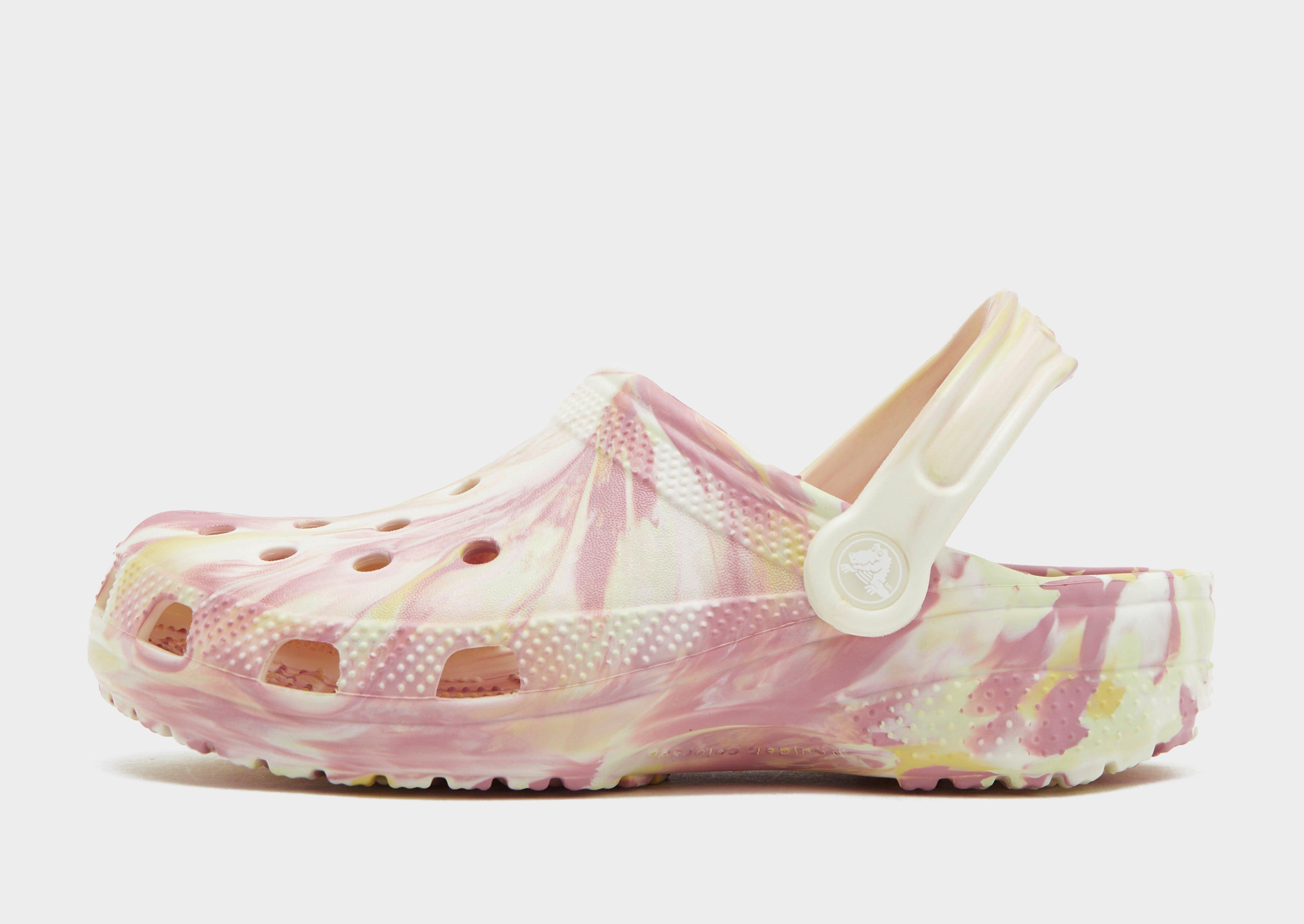 Add an iconic look to your footwear rotation with these children's Classic Clogs from Crocs. In a marble Pink colourway, these clogs have a lightweight Croslite upper that has ventilation ports for breathability. They feature a soft footbed that offers responsive cushioning with every step, while the outsole keeps you gripped to the surface. Comfortable, simple, these clogs are easy to wear - just slip on and get going! Wear them around the house, to the shops, and pull the heel strap down to lock in. Style Code: 210718-78S