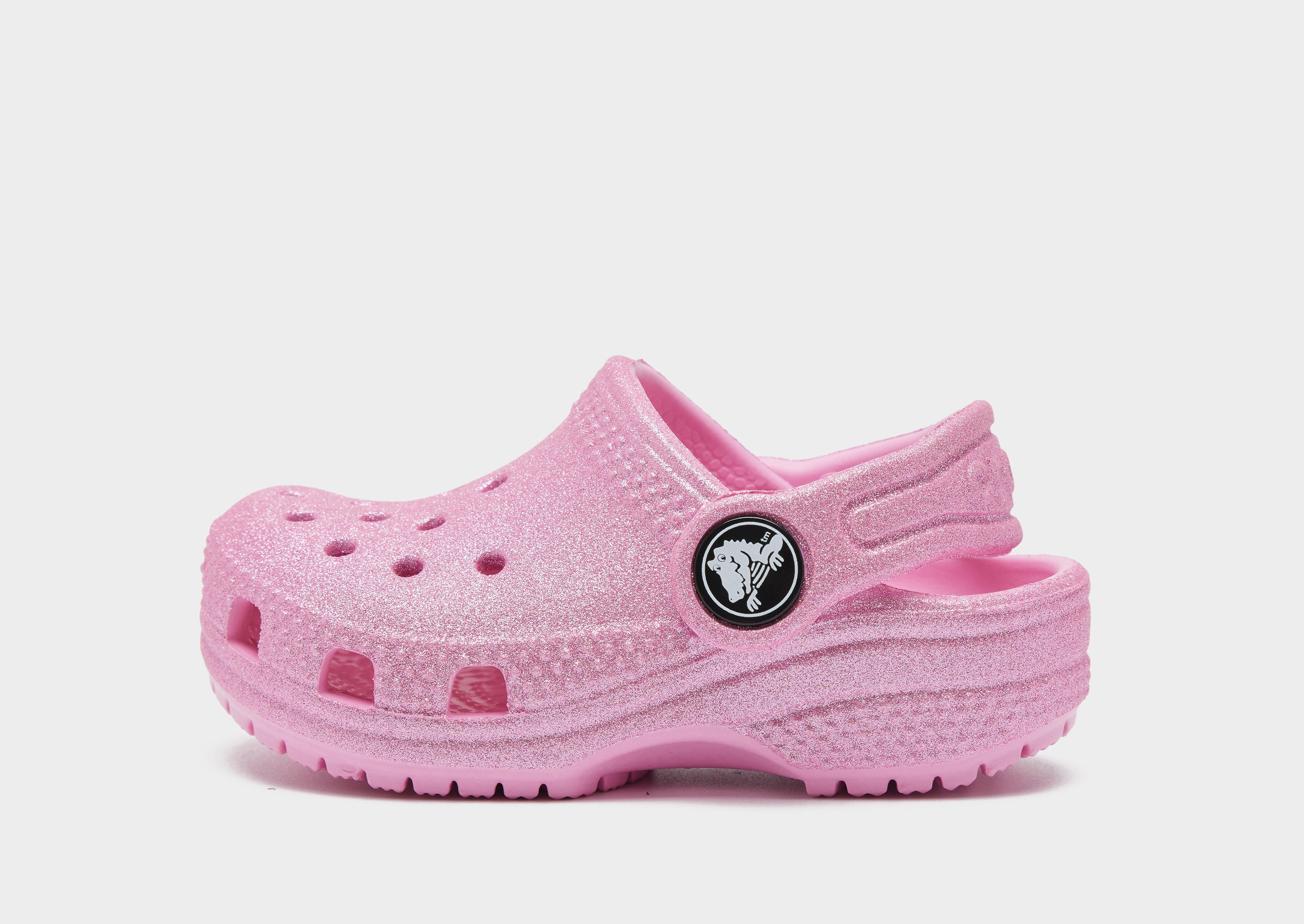 Add an iconic look to your footwear rotation with these infant's Classic Clogs from Crocs. In a Pink Glitter colourway, these clogs have a lightweight Croslite upper that has ventilation ports for breathability. They feature a soft footbed that offers responsive cushioning with every step, while the outsole keeps you gripped to the surface. Comfortable, simple, these clogs are easy to wear - just slip on and get going! Wear them around the house, to the shops, and pull the heel strap down to lock in. Style Code: 206992-6XE