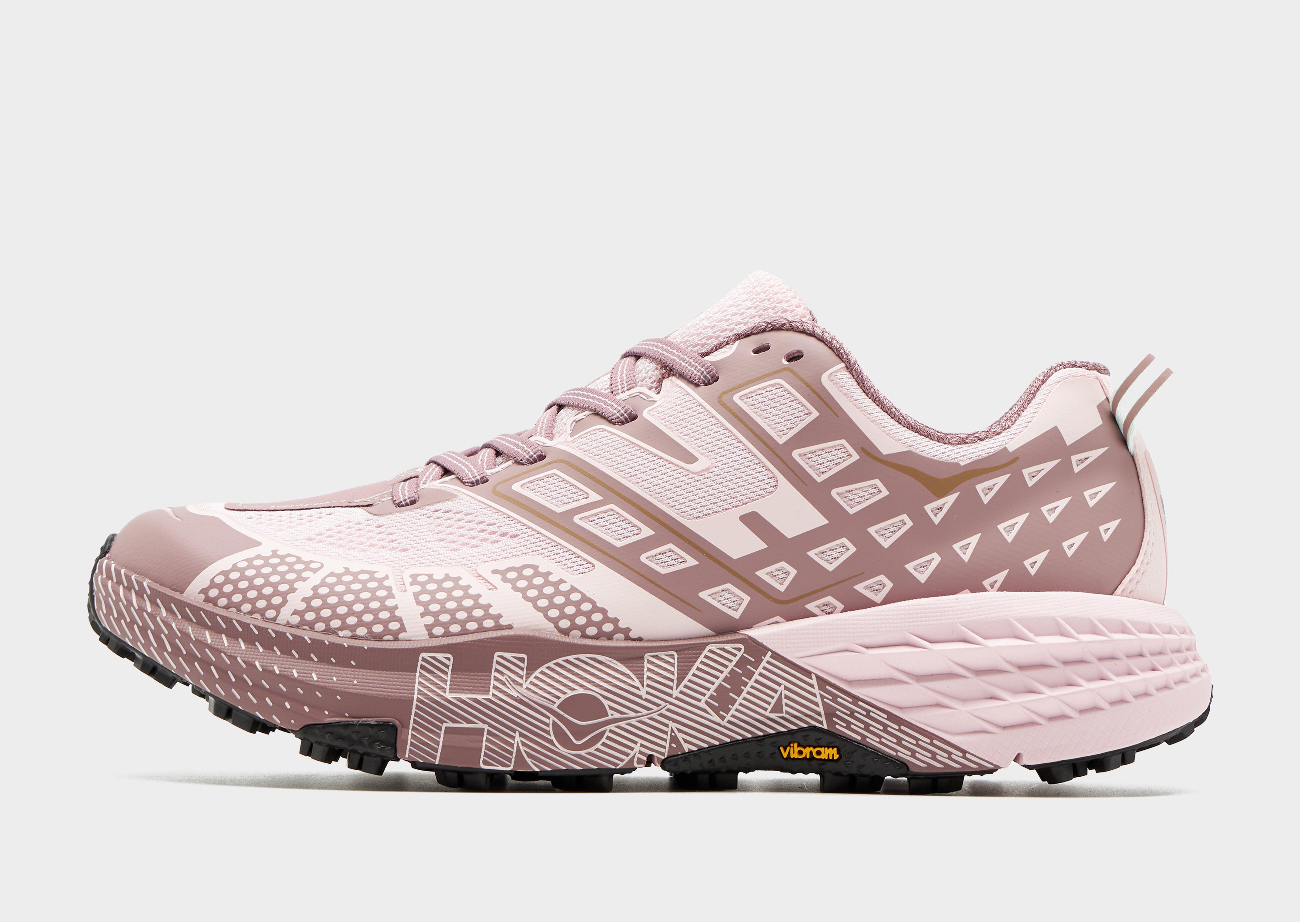 Rip up the trails in these women's Speedgoat 2 runners from HOKA. In a Pink and Mauve colourway, these lightweight trail running shoes have a durable double-layer mesh upper for breathable wear. They feature a tonal lace fastening with snug padding around the ankle collar for a secure fit, and sit atop a highly cushioned EVA midsole for unbeatable comfort and a responsive ride. With a Vibram Megagrip outsole with traction lugs for supreme grip on the trails, they're finished with signature HOKA branding throughout.