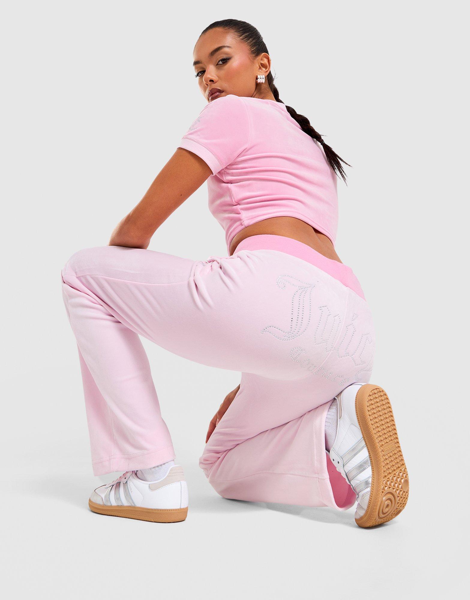 Add a pop of pastel to your wardrobe with these women’s Juicy Couture Velour Track Pants in light pink/dual pink, exclusive to JD. Crafted from velour, they offer a standard fit and soft, cozy feel. The striking colour-block design keeps your look on-trend while remaining versatile. Perfect for pairing with matching hoodies or neutral tops for casual street style.