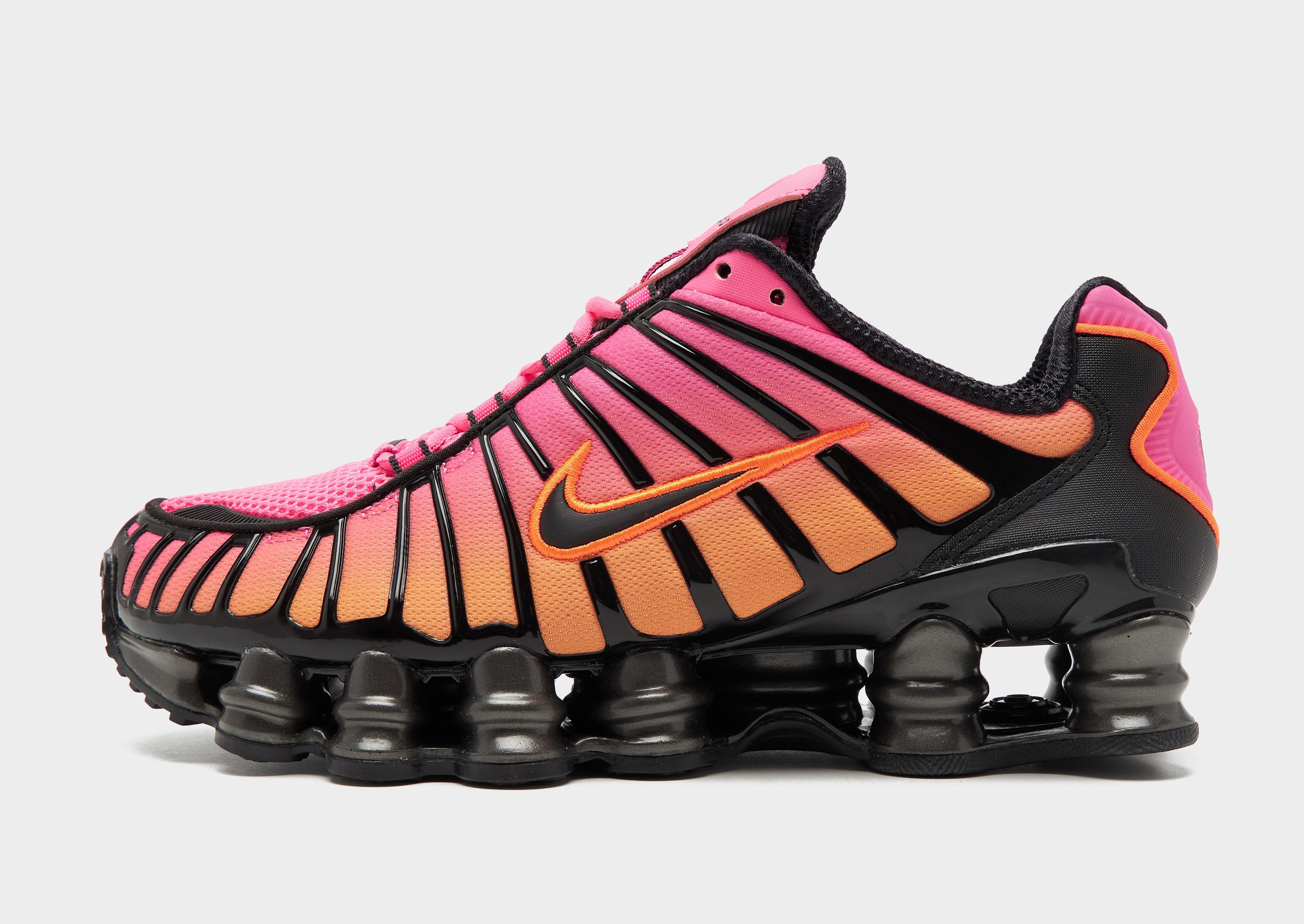 Retro but futuristic, these women's Shox TL sneakers from Nike bring back the 2003 icon in its OG form. In a Pink colourway with Orange details, these statement shoes are built with a breathable mesh upper that features glossy TPU overlays and a tonal lace up fastening for a locked-in fit. Nike's iconic Shox tech sits underfoot, with a full-length midsole of springy Shox columns for a super comfy feel. With a grippy rubber sole, these trainers are finished with Shox branding to the tongue and the signature Swoosh logo embroidered to the sidewalls. Style Code: IH1336-601