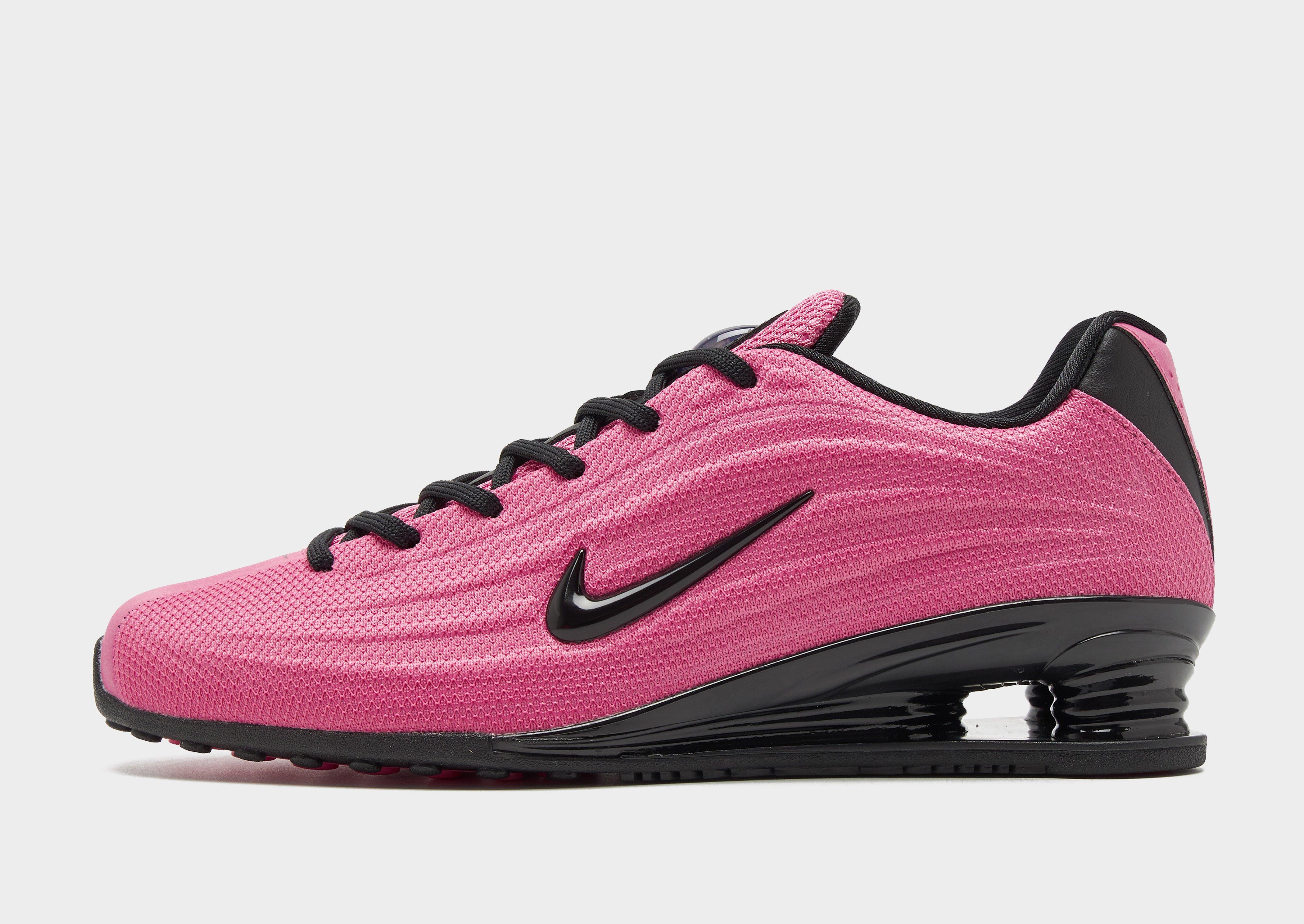Retro but futuristic, these women's Shox Z sneakers from Nike redefine the classic in a streamlined, lower silhouette. In a Pink colourway with Black details, these statement shoes are built with a breathable textile upper that features glossy TPU overlays and a tonal lace up fastening for a locked-in fit. Nike's iconic Shox tech sits underfoot in a lower design, with a full-length midsole of springy Shox columns for a super comfy feel. With a grippy rubber sole, these trainers are finished with Shox branding to the tongue and the signature Swoosh logo embroidered to the sidewalls.