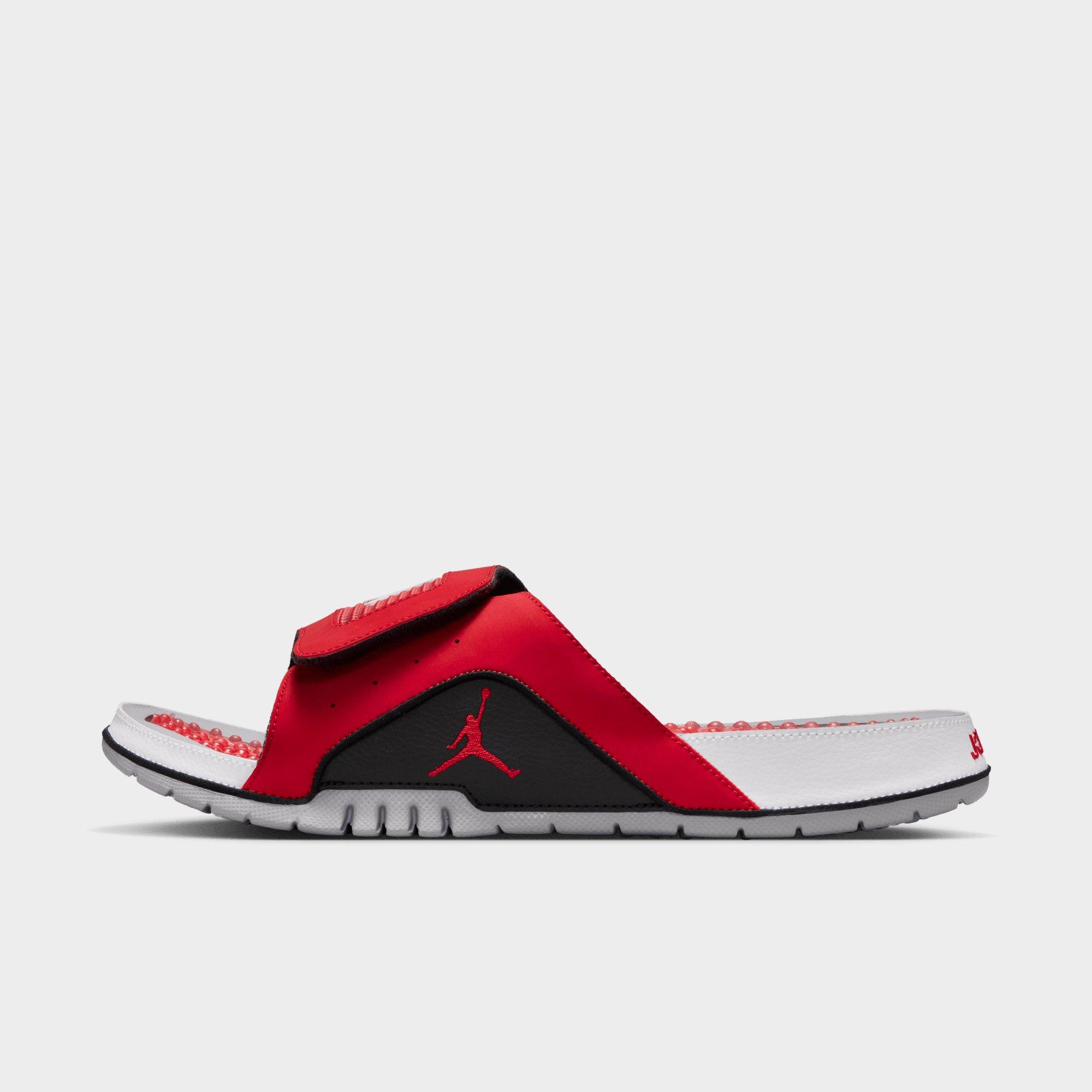 Keep it easy on off-days with these men's Jordan Hydro IV slides, perfect for post-game recovery or laid-back wear. Designed for comfort, they feature a cushioned footbed that supports every step whether you're at home or poolside. The adjustable strap delivers a secure fit, while the bold branding adds signature style. Finished in a black colourway with red accents, they bring classic Jordan energy to your downtime.