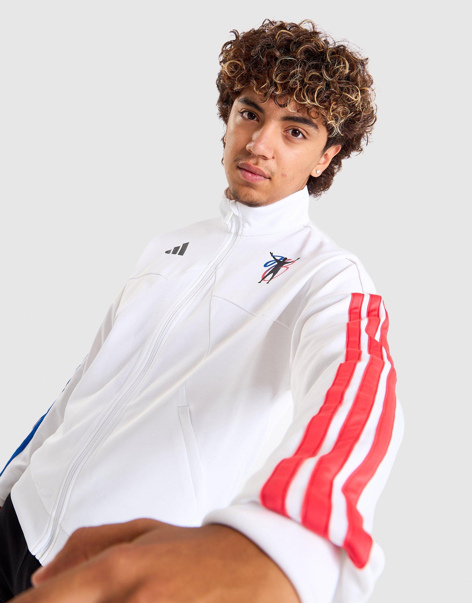 Rep the best in the game with the Adidas Boys' Jude Bellingham Junior Track Top in white, red, and blue - a bold, football-inspired junior track top celebrating one of the sport's most electrifying young talents. The Tiro-inspired design and JB branding deliver genuine football culture credibility, while the lightweight construction and quarter-zip design make it easy to layer over training kits or casual outfits. The white, red, and blue colourway channels JB's dynamic energy on and off the pitch. A must-have junior Adidas track top for young Bellingham fans.