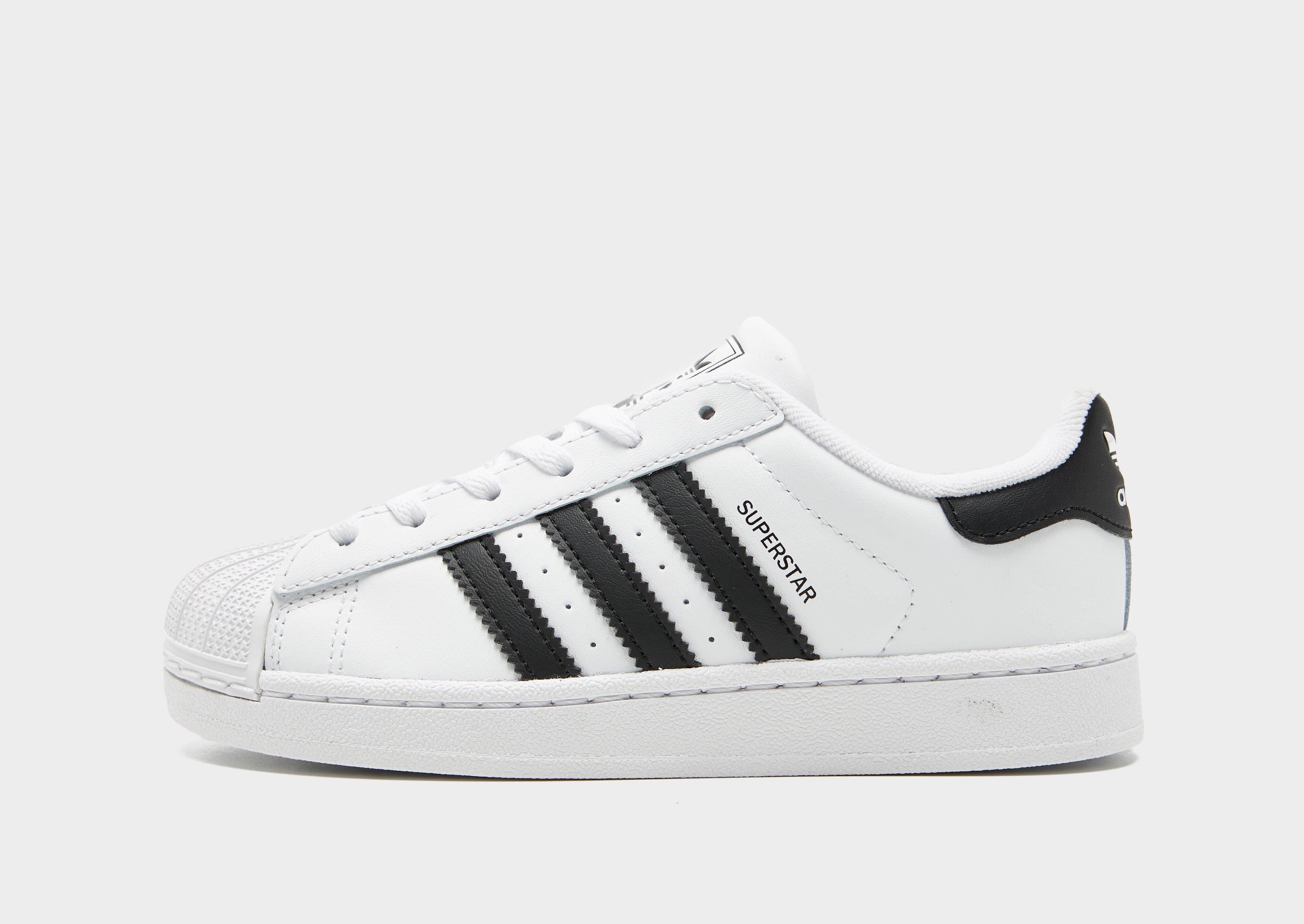 Show of their style quality with these children's adidas Originals Superstar II trainers! Crafted with a white upper, these shoes also feature the adidas three stripe branding to the sides in white - perfect for those who like to keep it simple when it comes to their footwear. Other features include: Printed adidas logo on the tongue and heel piece plus a classic rubber shell toe for a quality finish.