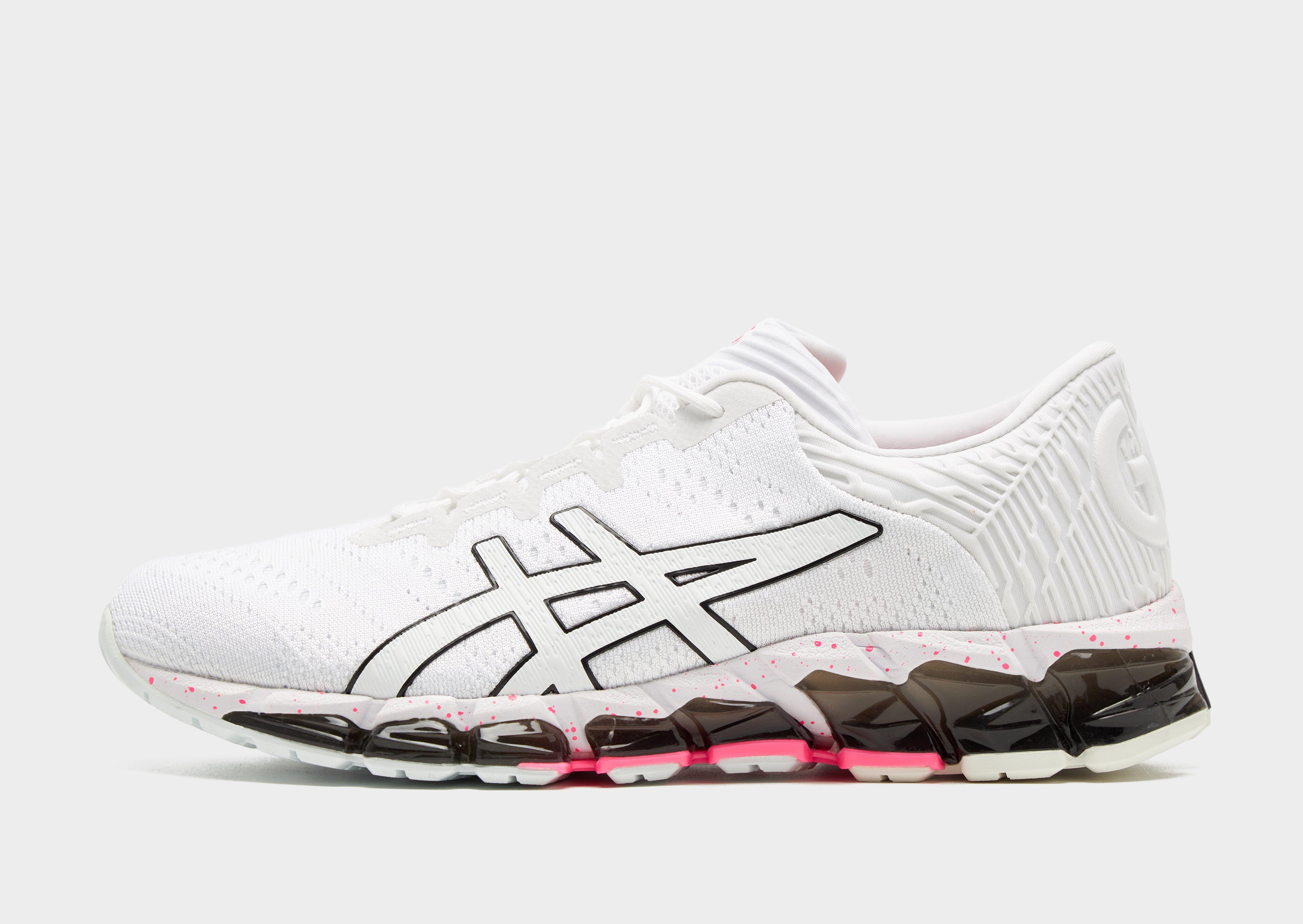Get runnin' style ready with these women's Gel Quantum 360 5 sneakers from ASICS. Droppin' in a White colourway with Pink details, these JD exclusive sneaks are made from jacquard mesh upper wraps for a lightweight but supportive fit. 360 degrees of GEL technology to the uppers means these sneaks have custom comfort built in. In a futuristic design, these creps have a SOLYTE midsole and EVA sockliner to cushion every step on the streets or treadmill. An AHARPLUS rubber outsole gets you grip for a responsive step, these kicks are finished with ASICS branding to the tongue. Style Code: 1203B006.100W