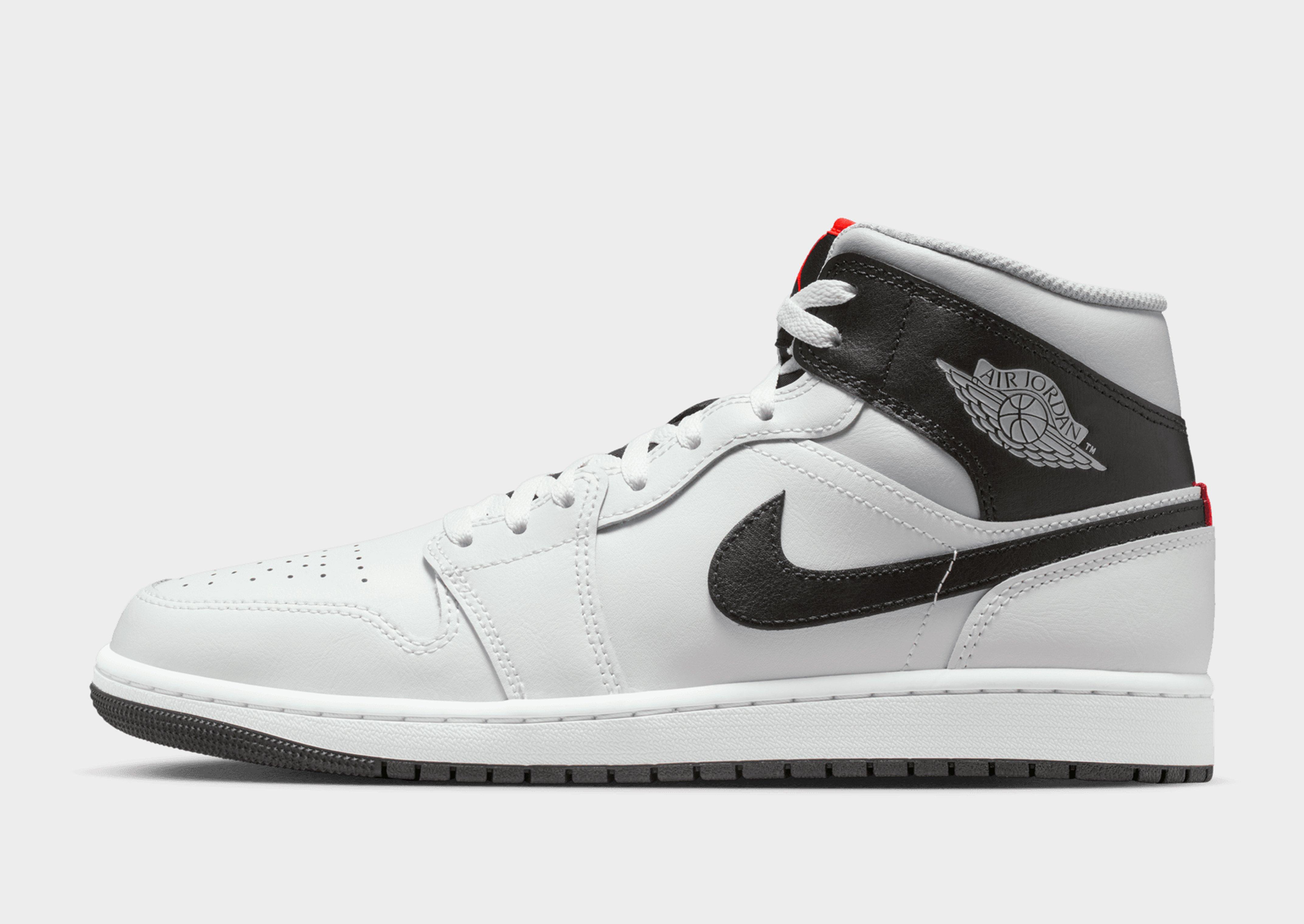 Step into iconic style with these men's Air Jordan 1 Mid trainers. Dressed in off-white, grey, and red tones, they bring legendary basketball heritage to contemporary streetwear. The classic mid-top silhouette features premium leather construction with signature Jordan branding throughout. Built with comfortable cushioning and a durable rubber outsole, these kicks deliver all-day wearability with timeless appeal. Perfect for sneaker fans who want to rep authentic Jordan DNA. Style Code: DQ8426-109
