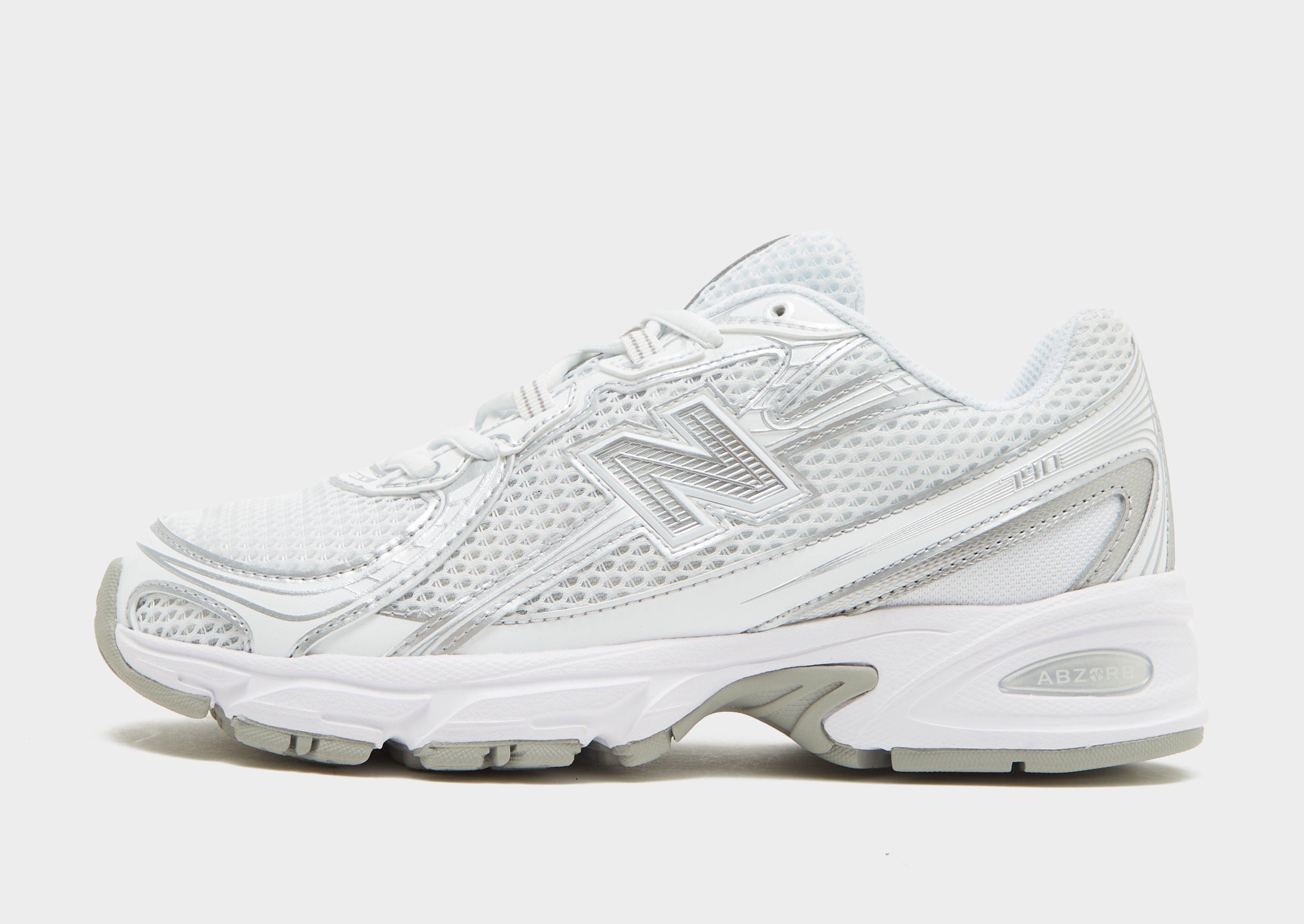 Step out in iconic '00s inspired kicks with these women's 740 sneakers from New Balance. Droppin' in a White colourway with Silver details, these shoes have an open knit mesh upper with two-tone and angular overlays to keep things cool inside. They feature a lace fastening to lock 'em in, while the ABZORB midsole offer a combo of cushioning and compression resistance for smooth steppin'. Sitting on a grippy rubber sole, they're signed off with reflective details and a moulded TPU 'N' logo on the sidewalls. Style Code: U740WM2W