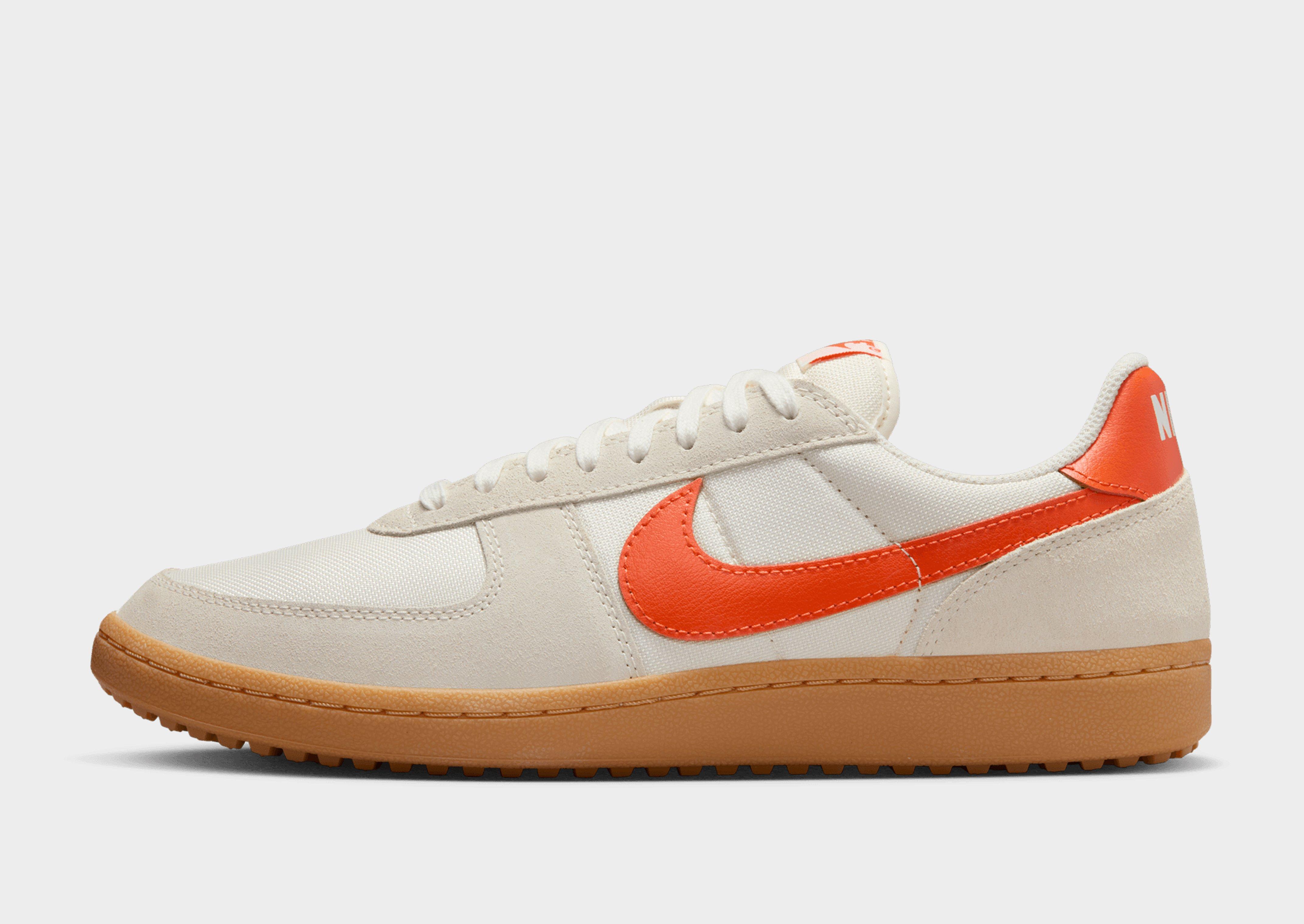 Add a vintage, '80s look to your footwear rotation with this men's Field General '82 sneaker from Nike. With its roots in American gridiron, this shoe is made from a mix of smooth leather and tough textiles to give it that old-school look. In an Ivory White colourway with Orange details, these sneakers rest atop a rubber waffle sole for a grippy tread. Finished with the iconic Swoosh stitched to the sidewalls. Style Code: HF3165-105