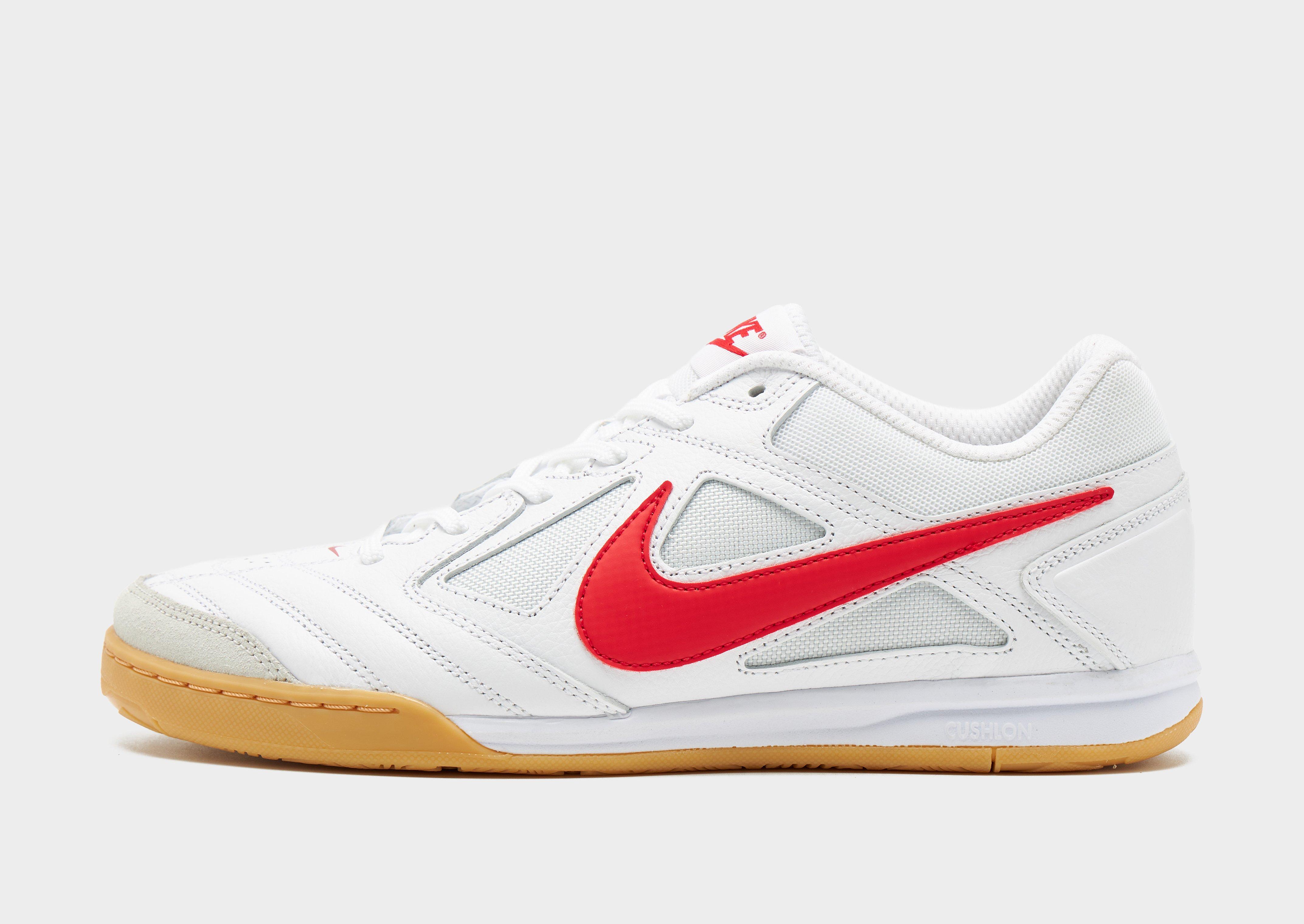 Keep it classic in these men's indoor football-inspired shoes, the Gato from Nike. Landing in a White colourway with Red details, these retro-inspired sneakers are crafted from leather, suede and breezy textile for a premium look and feel. With a low-profile silhouette, they feature a lace fastening to keep you locked in and a low-cut padded ankle collar for snug, supportive wear. Signed off with the iconic Swoosh to the sidewalls. Style Code: HQ6019-102