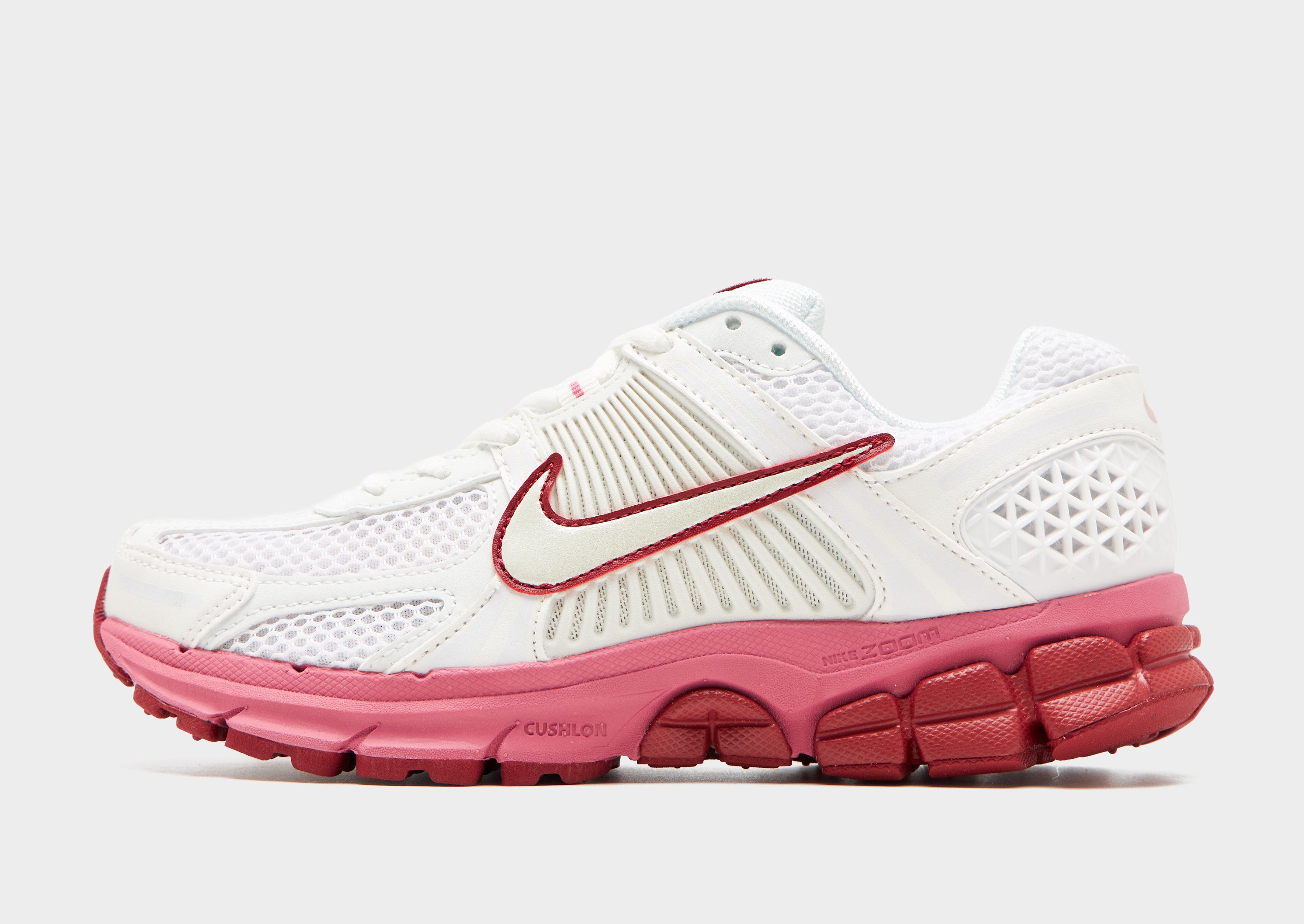 Retro running hits all-new heights with these women's Zoom Vomero 5 shoes from Nike. Landing in a Sail White colourway with Pink details, this modern take on early '00s sneakers have a breathable mesh upper with TecTuff and utilitarian overlays for a durable and structured fit. Equipped with extra padding at the collar and tongue for comfort, they're sat above Zoom Air cushioning in the foam midsole for a super responsive, lightweight ride. Finished off with a solid rubber outsole and signature Swoosh logos. Style Code: FJ2028-108