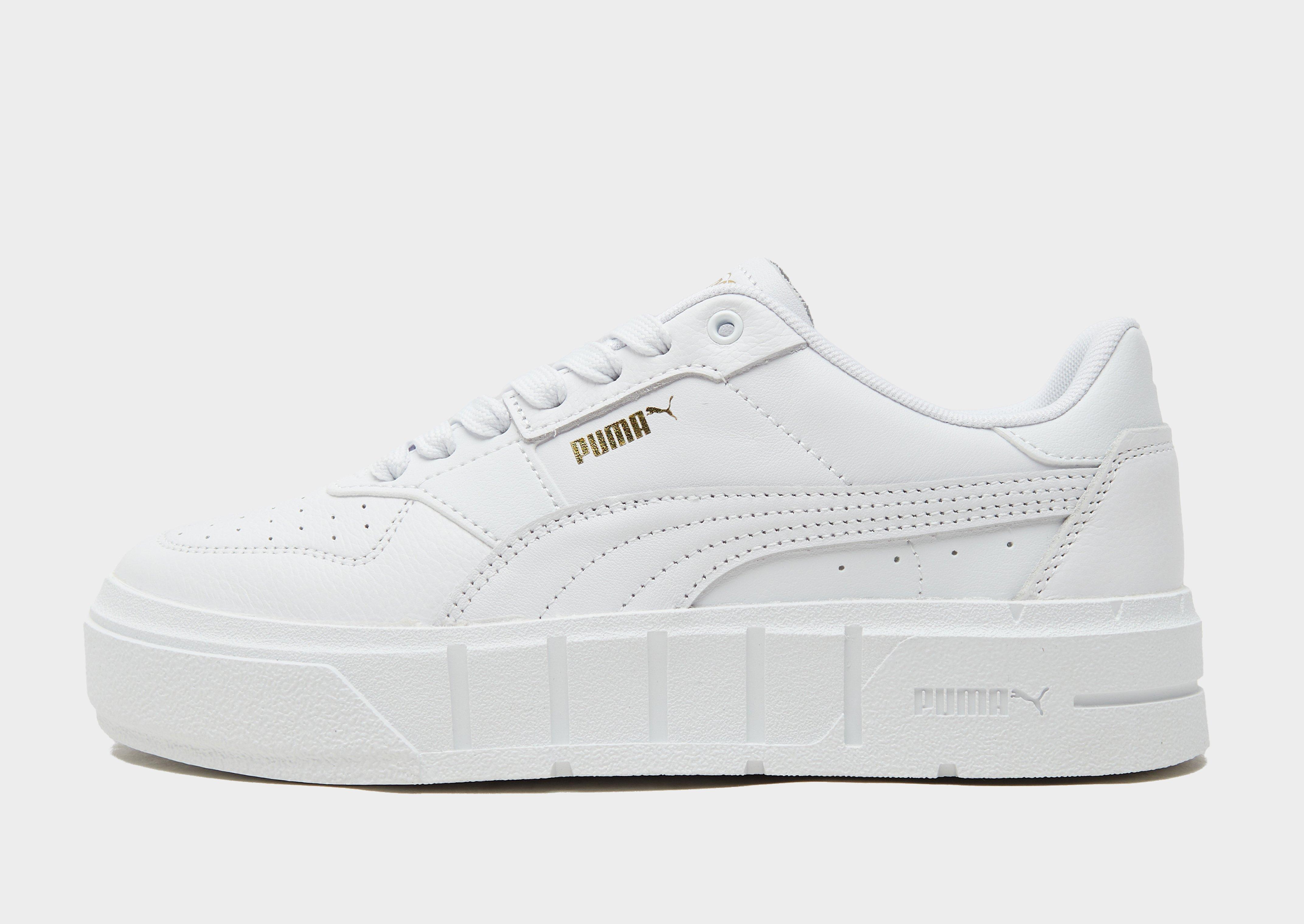 Add a go-to sneaker to your crep collection with these women's Cali trainers from PUMA. Taking inspo' from its 80's tennis heritage, these trainers are built with a premium leather upper in a fresh all-white colourway. They're equipped with a statement, stacked midsole, which guarantees comfy, cushioned wear every time you step out, while a tonal lace-up fastening keeps your foot locked in. With perforations to the forefoot for added breathability, these sneakers are finished with the iconic PUMA Formstrip to the sidewalls and branding to the tongue and heel.