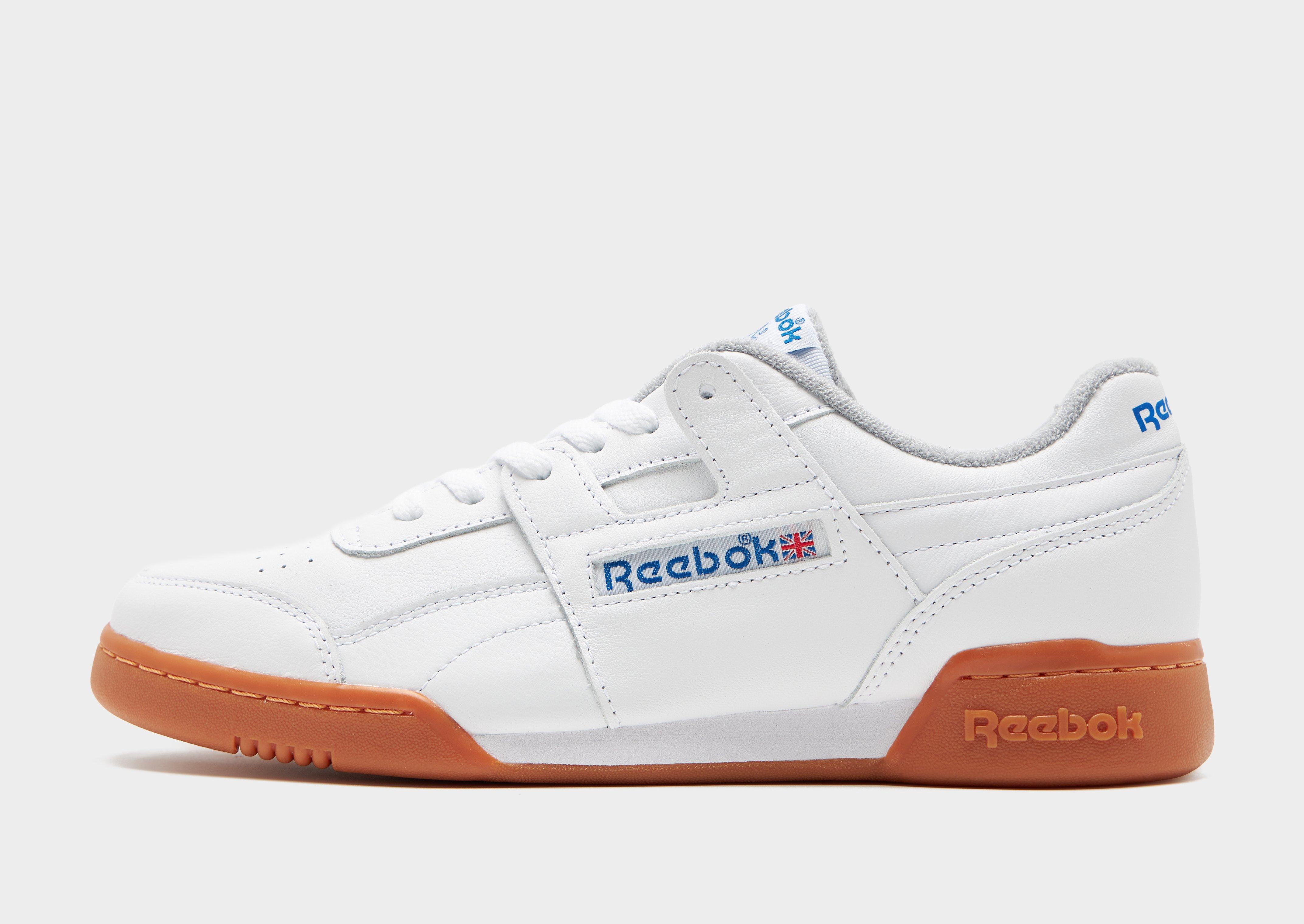 Bring classic training style to the streets with these Reebok Workout Plus trainers. Dressed in a clean white leather upper with vector blue accents, they celebrate retro gym heritage with timeless court-inspired design. The soft garment leather construction delivers premium comfort and a broken-in feel straight out of the box. Underfoot, the durable gum rubber outsole provides reliable grip and vintage aesthetic appeal. Finished with iconic Reebok branding and signature side stripes, these kicks are a staple for fans of old-school sportswear style. Style Code: 100244983