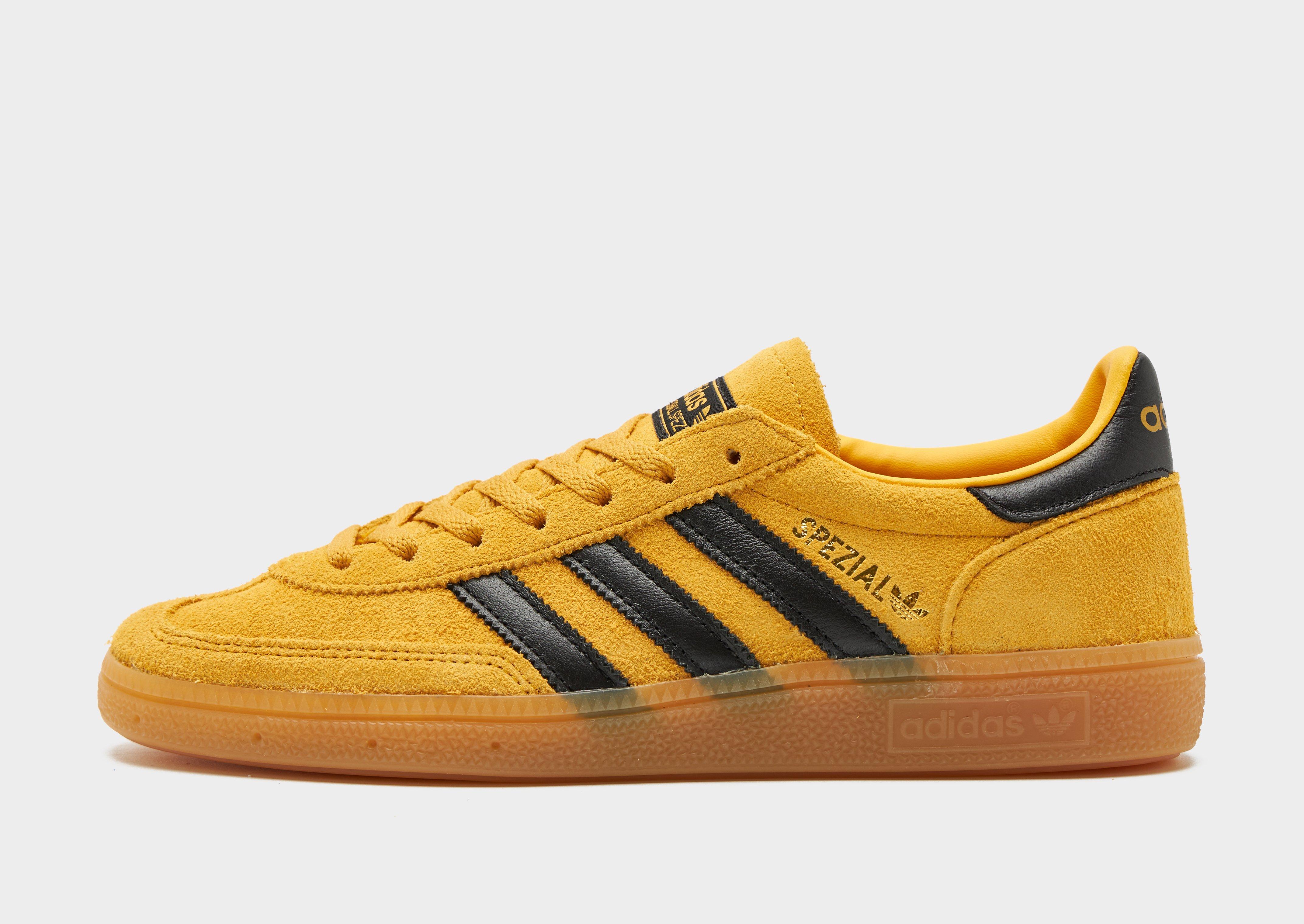 From the terrace to the street, rep a classic look with these women's Handball Spezial shoes from adidas Originals. First introduced in 1979 for the speedy handball courts of Germany, the simple yet stylish silhouette quickly made it a go-to, iconic trainer. Landing in a Yellow colourway with Black details, these JD-exclusive sneakers have an upper made with suede and nylon for durable wear. They feature a lace fastening with a padded ankle collar for alocked-in fit and sit on a lightweight midsole. With a gum rubber outsole for total traction, they're signed off with signature Adi 3-Stripes to the sidewalls. Style Code: JS2865